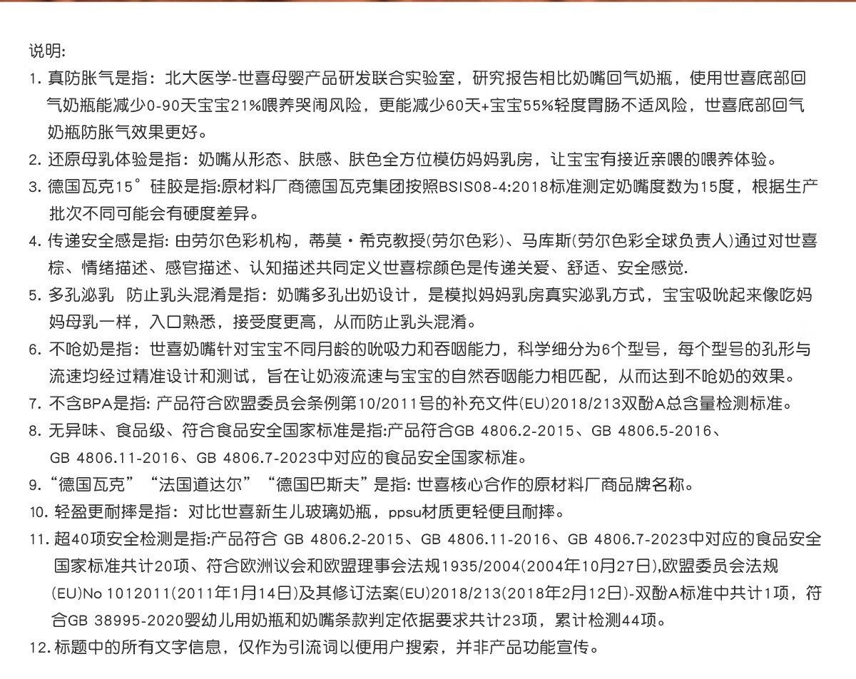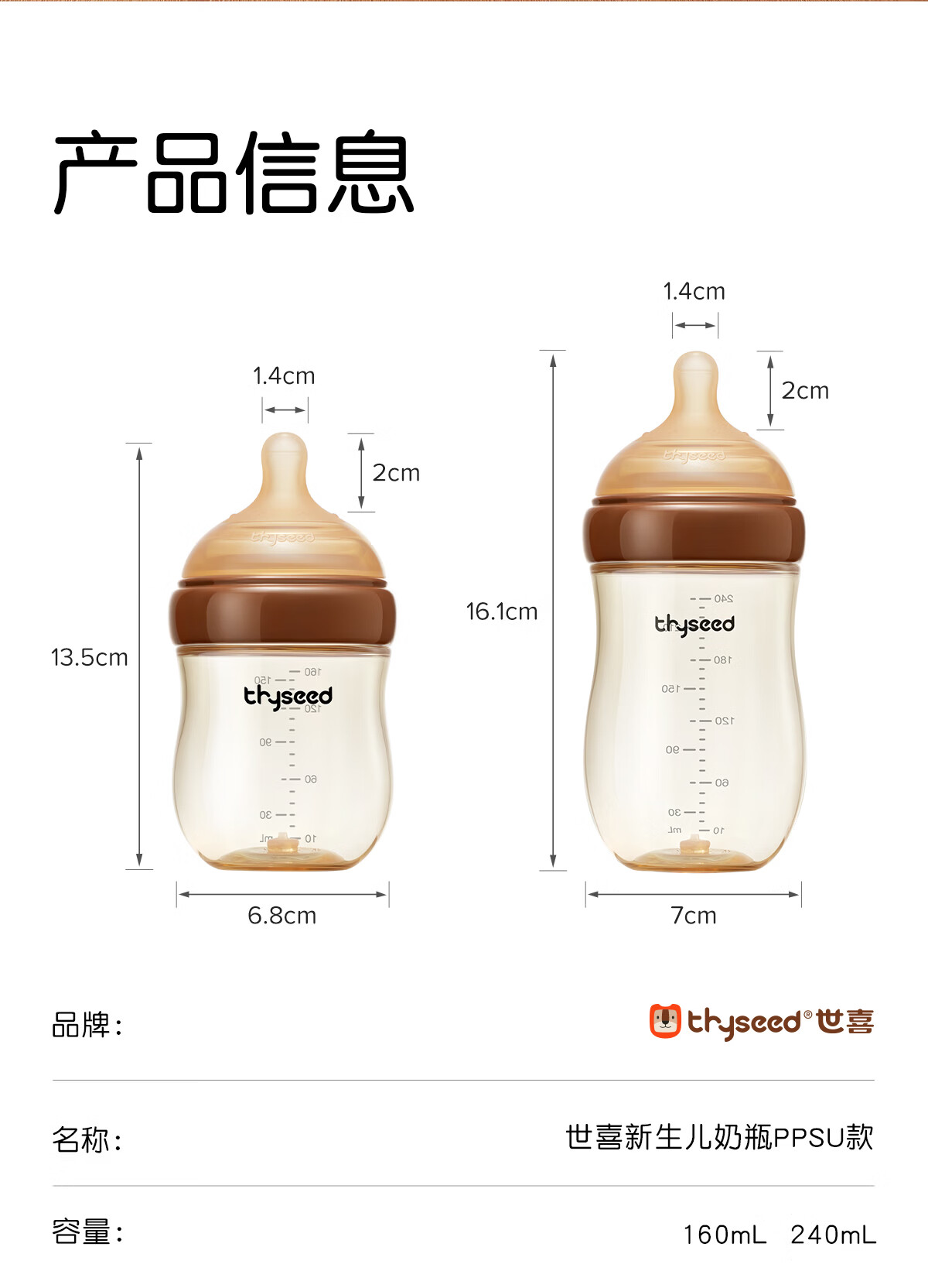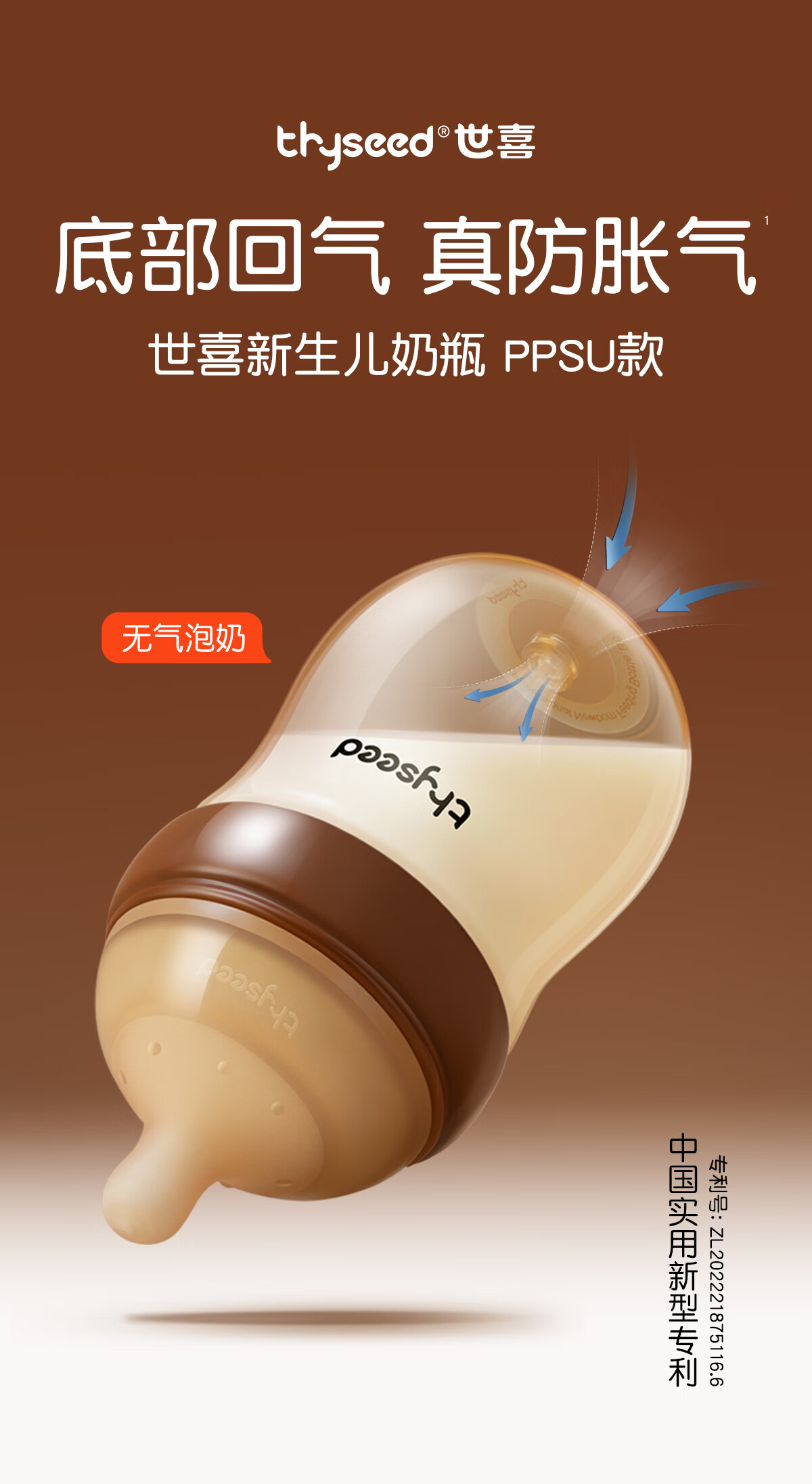 世喜奶瓶新生儿3-6个月以上防胀气ppsu婴儿仿母乳奶嘴240mlAB款随机发