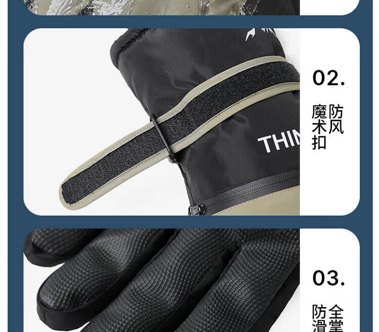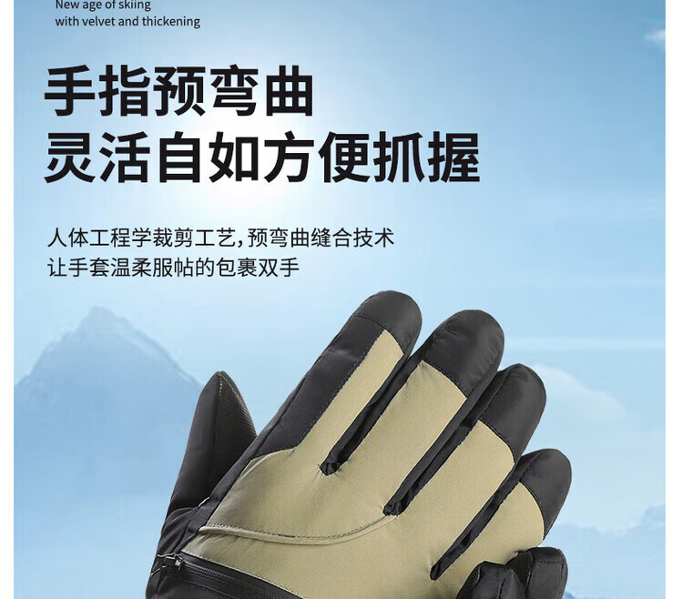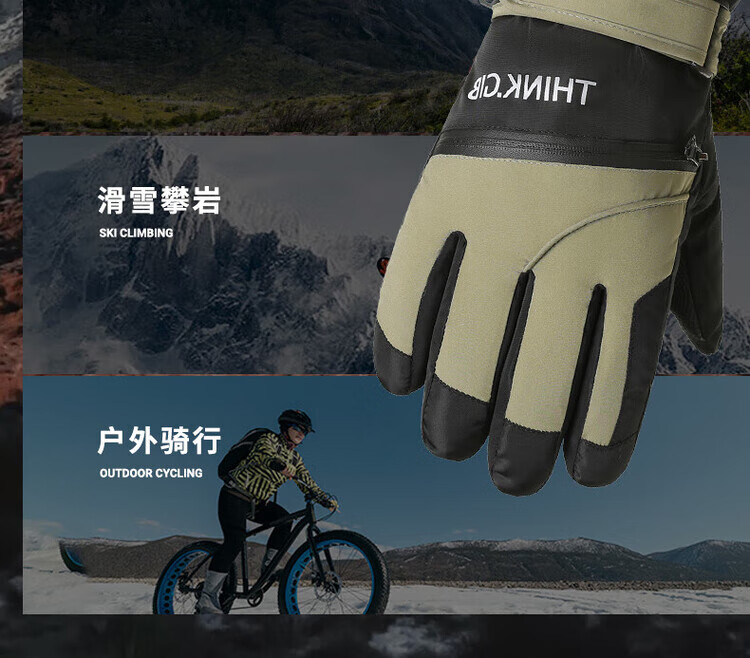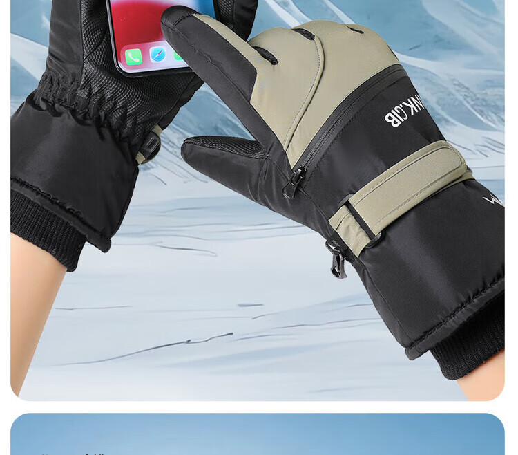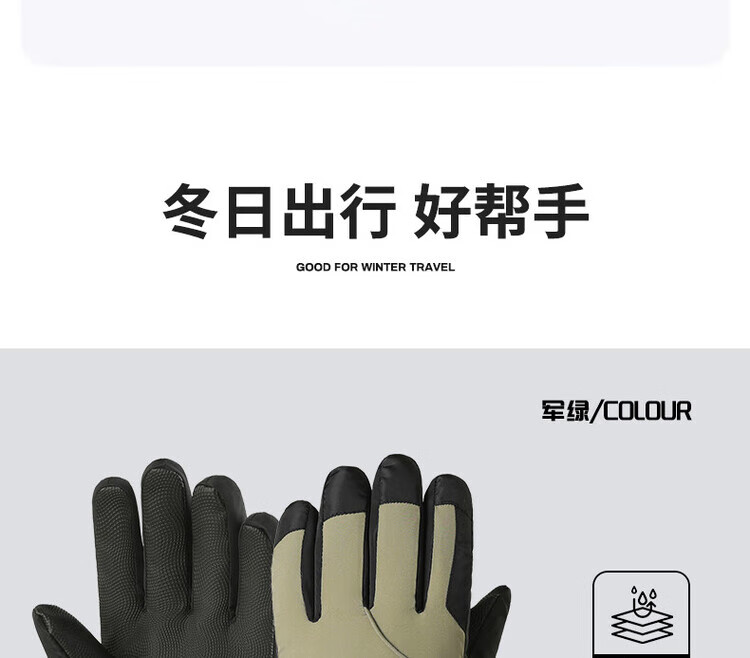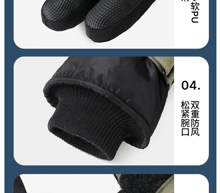 采蕉猫冬季骑行保暖可触屏电动车户外防寒防水加绒加棉加厚手套户外出行 【加绒加厚+防风防水+可触屏】青色 均码