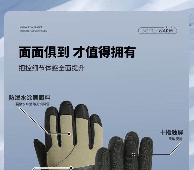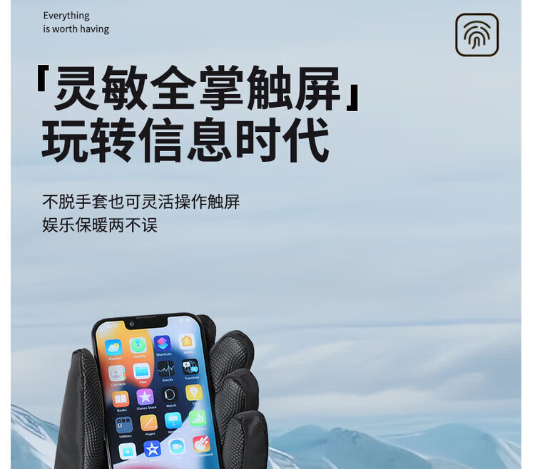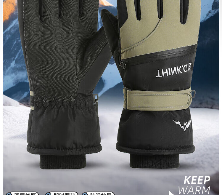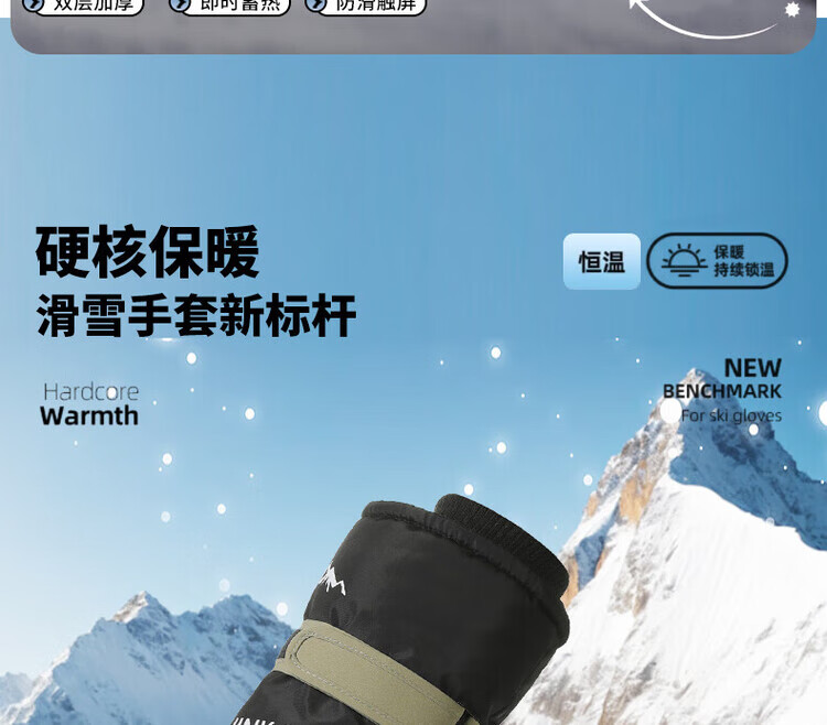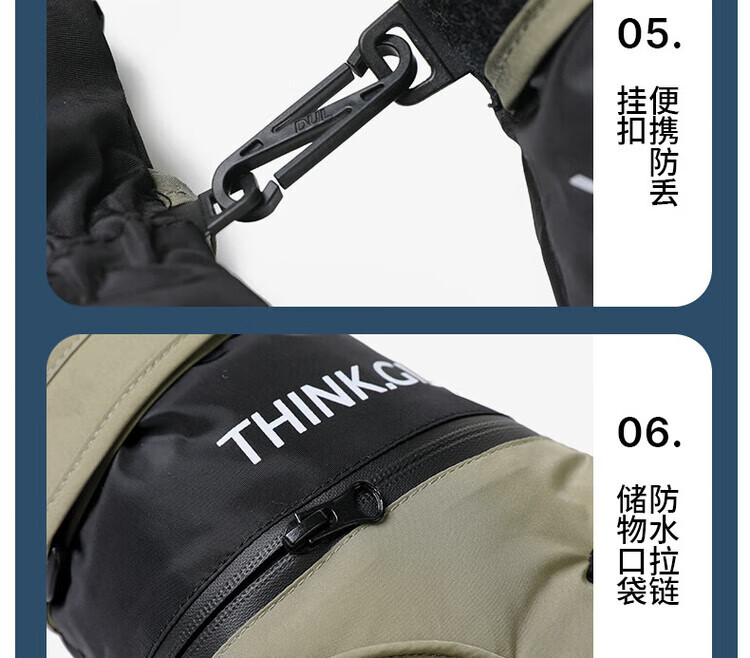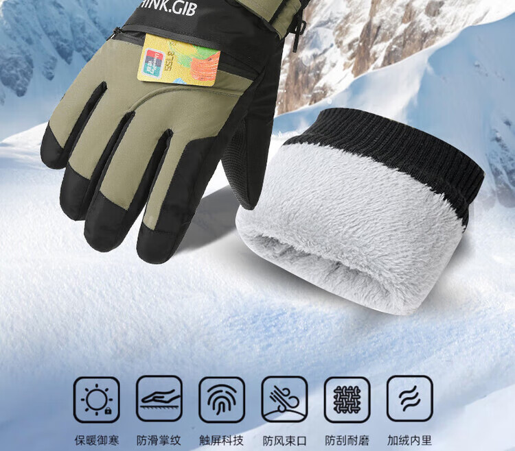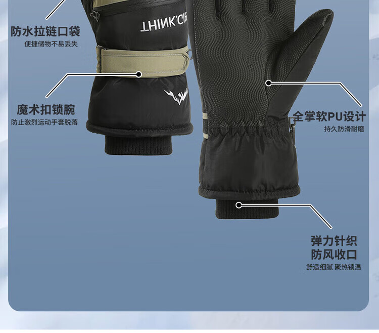 采蕉猫冬季骑行保暖可触屏电动车户外防寒防水加绒加棉加厚手套户外出行 【加绒加厚+防风防水+可触屏】青色 均码