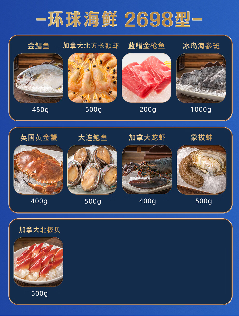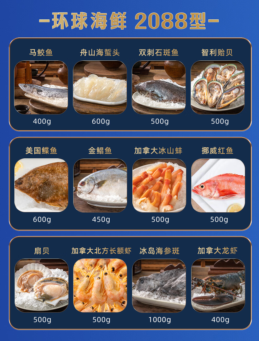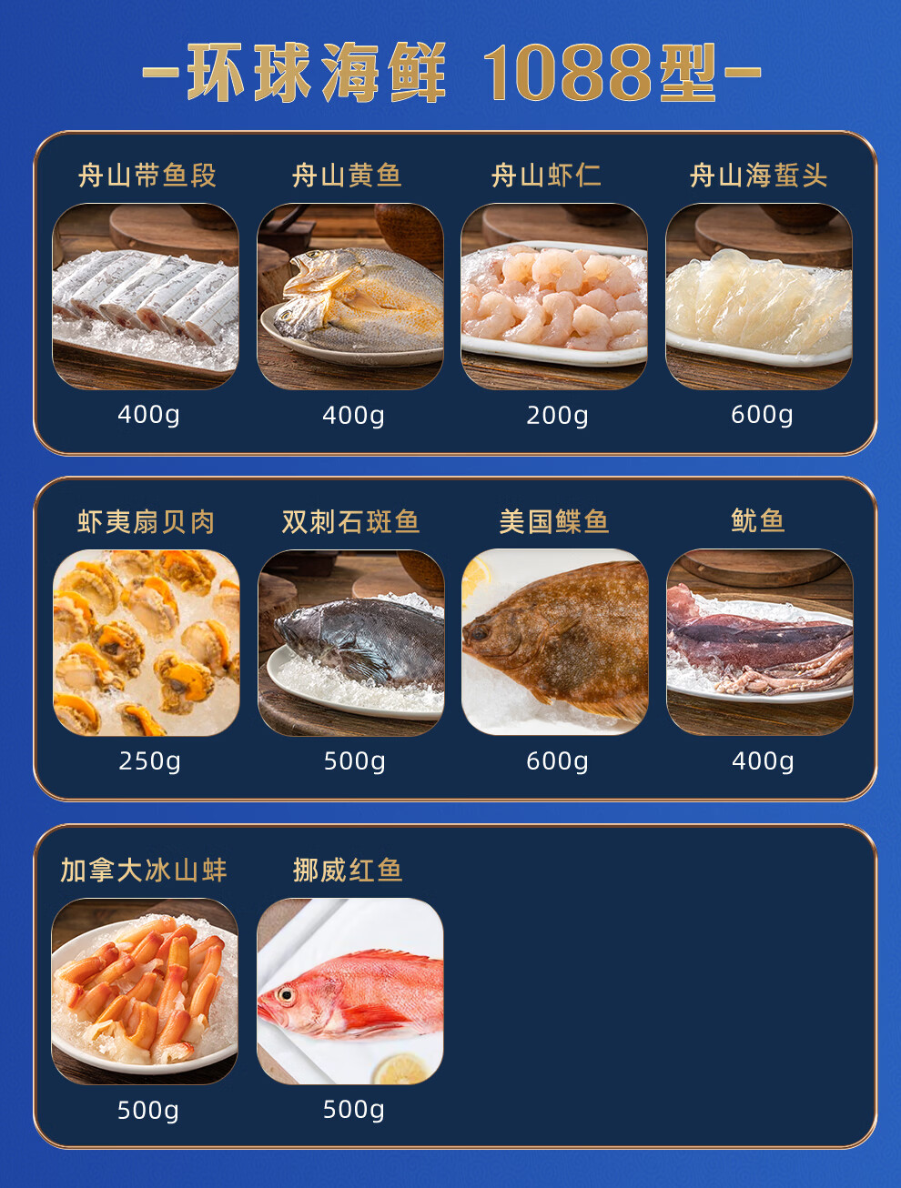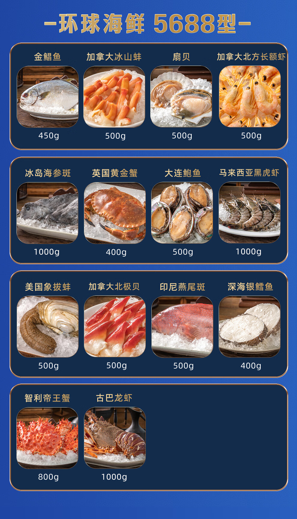 【礼券】蟹状元环球海鲜进口海鲜礼券礼盒春节年货大礼包 1088型内含10件食材4350g