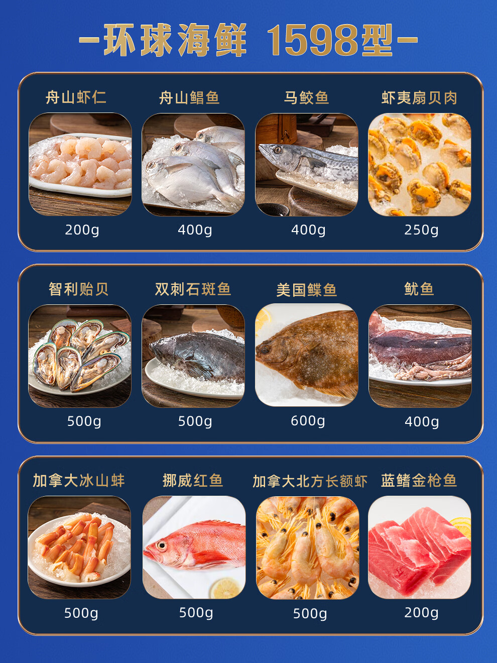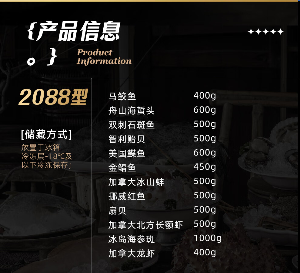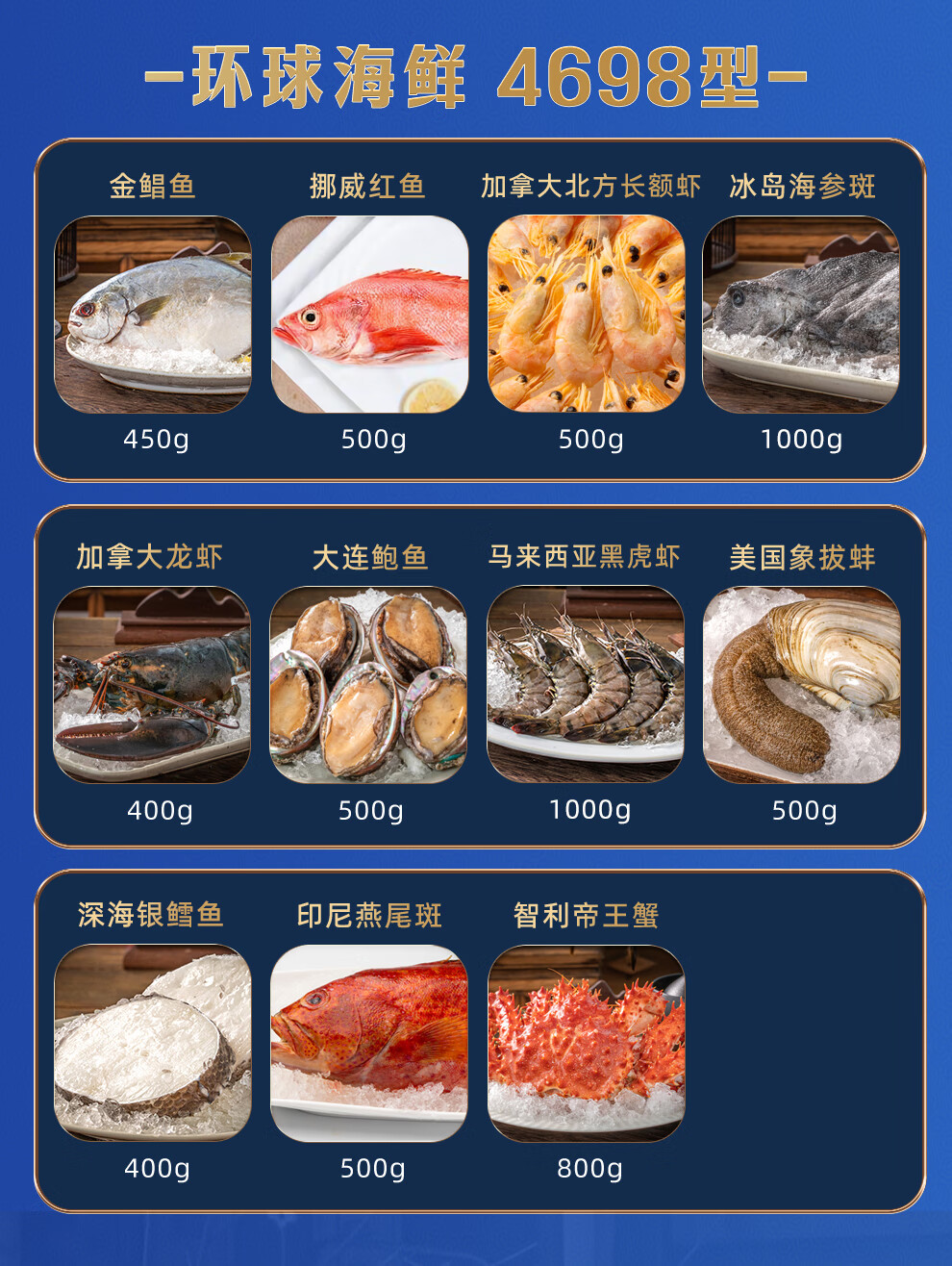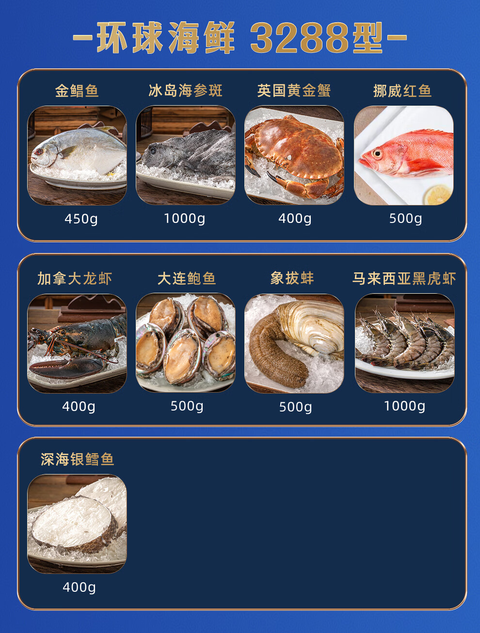 【礼券】蟹状元环球海鲜进口海鲜礼券礼盒春节年货大礼包 1088型内含10件食材4350g