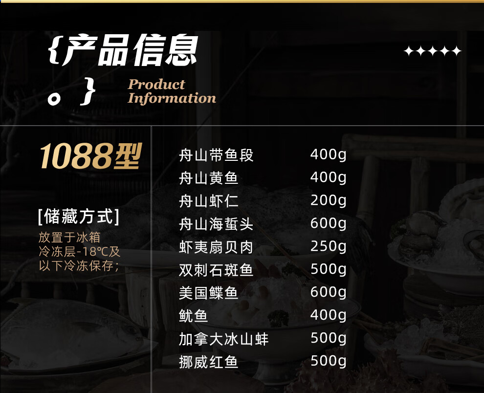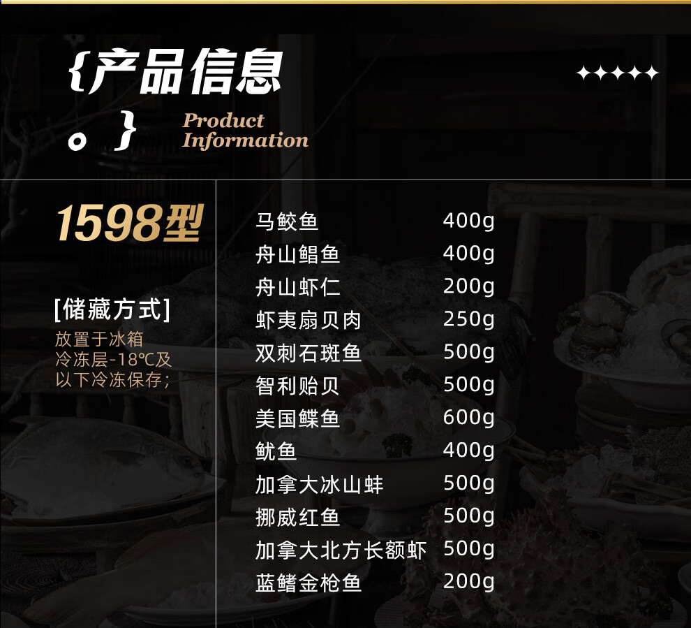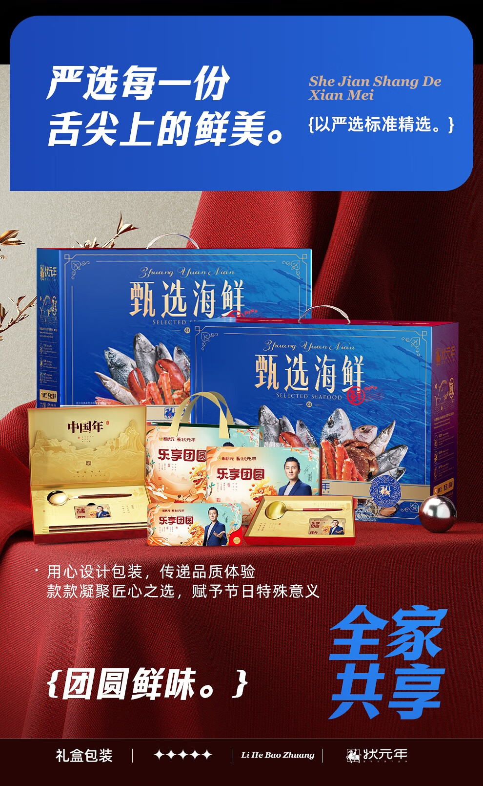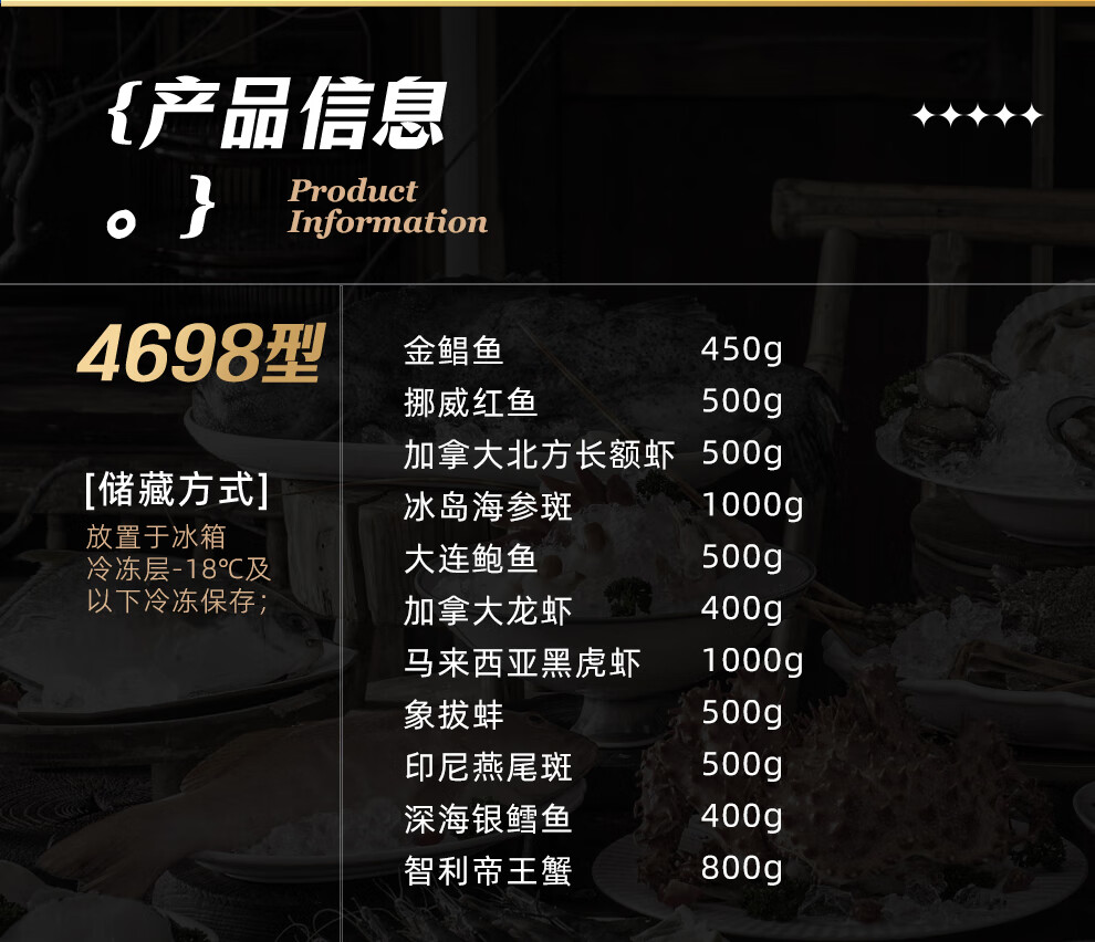 【礼券】蟹状元环球海鲜进口海鲜礼券礼盒春节年货大礼包 1088型内含10件食材4350g
