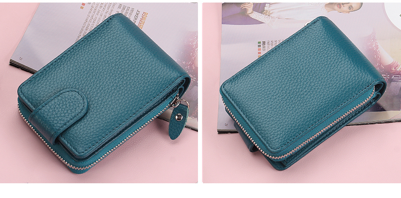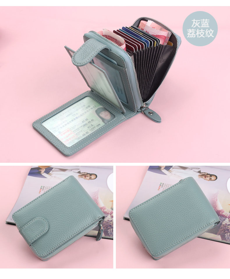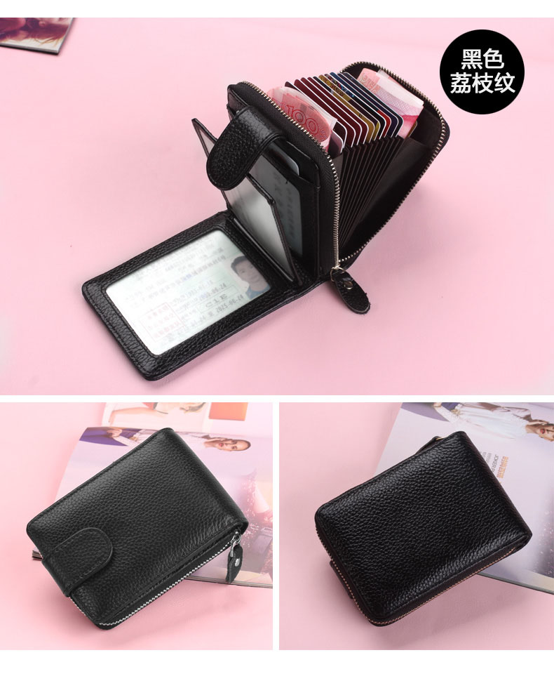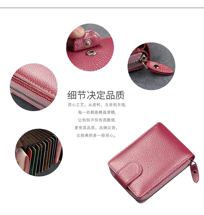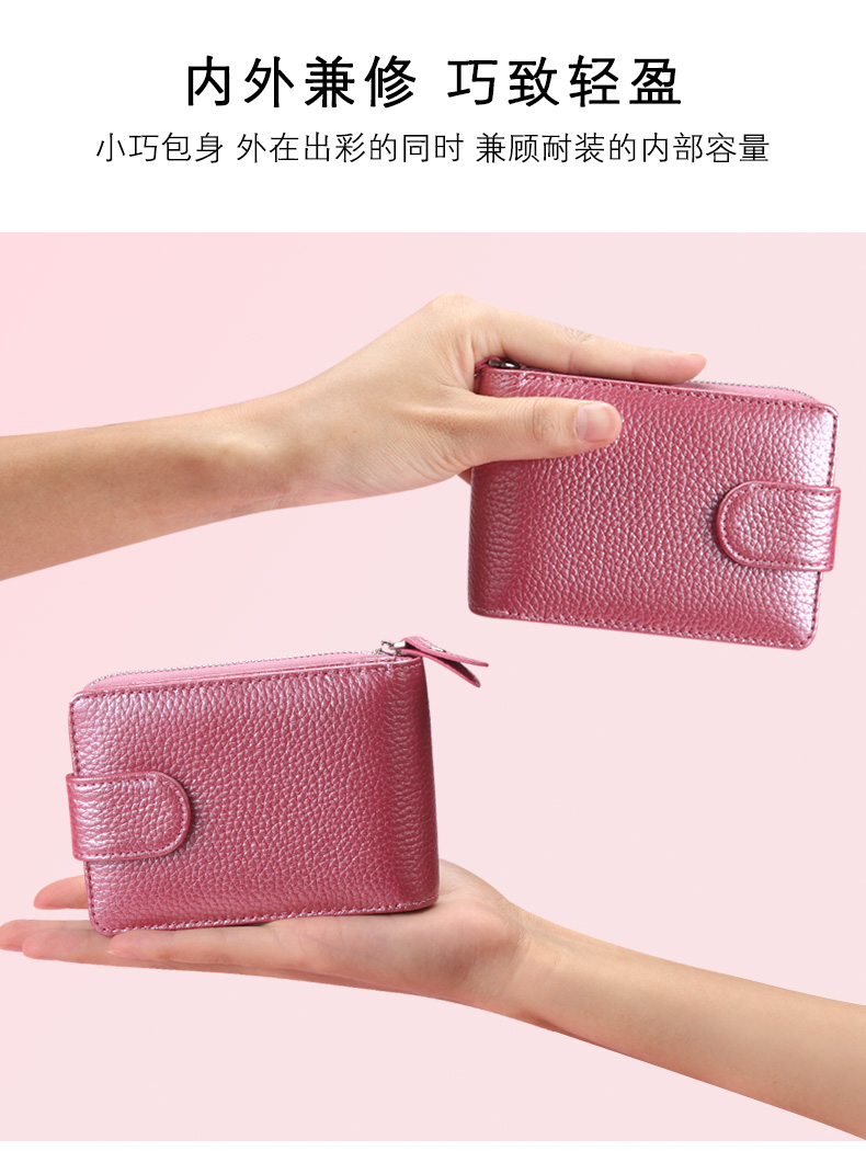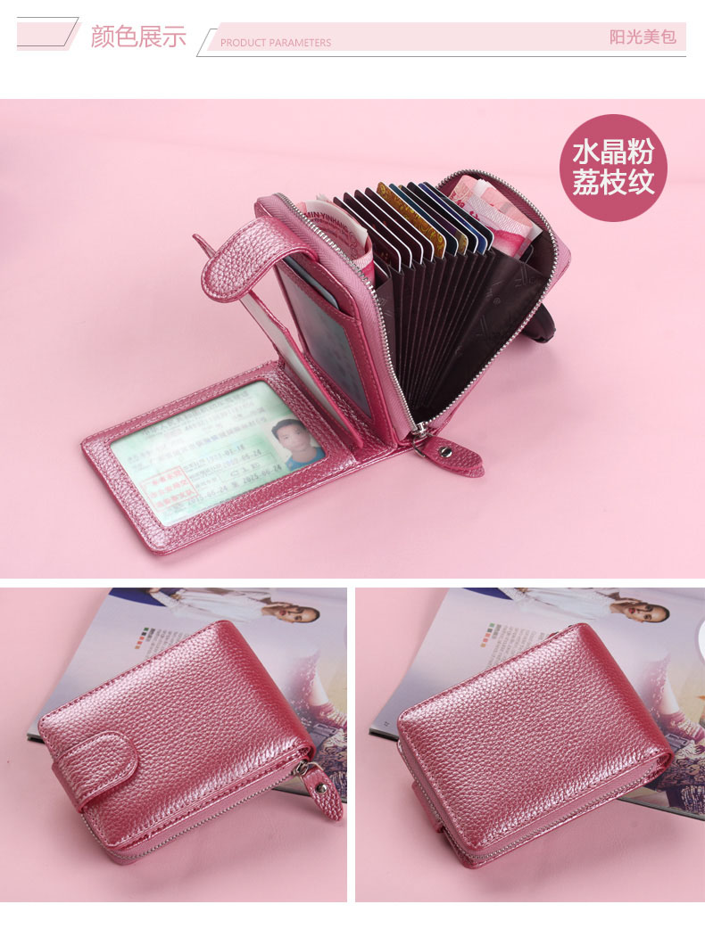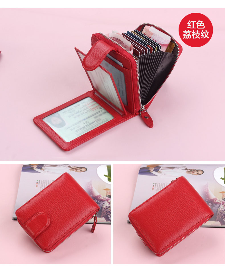 佐尔丹妮 卡包女士头层牛皮拉链风琴多卡位大容量多功能驾驶证皮套男 817粉红色