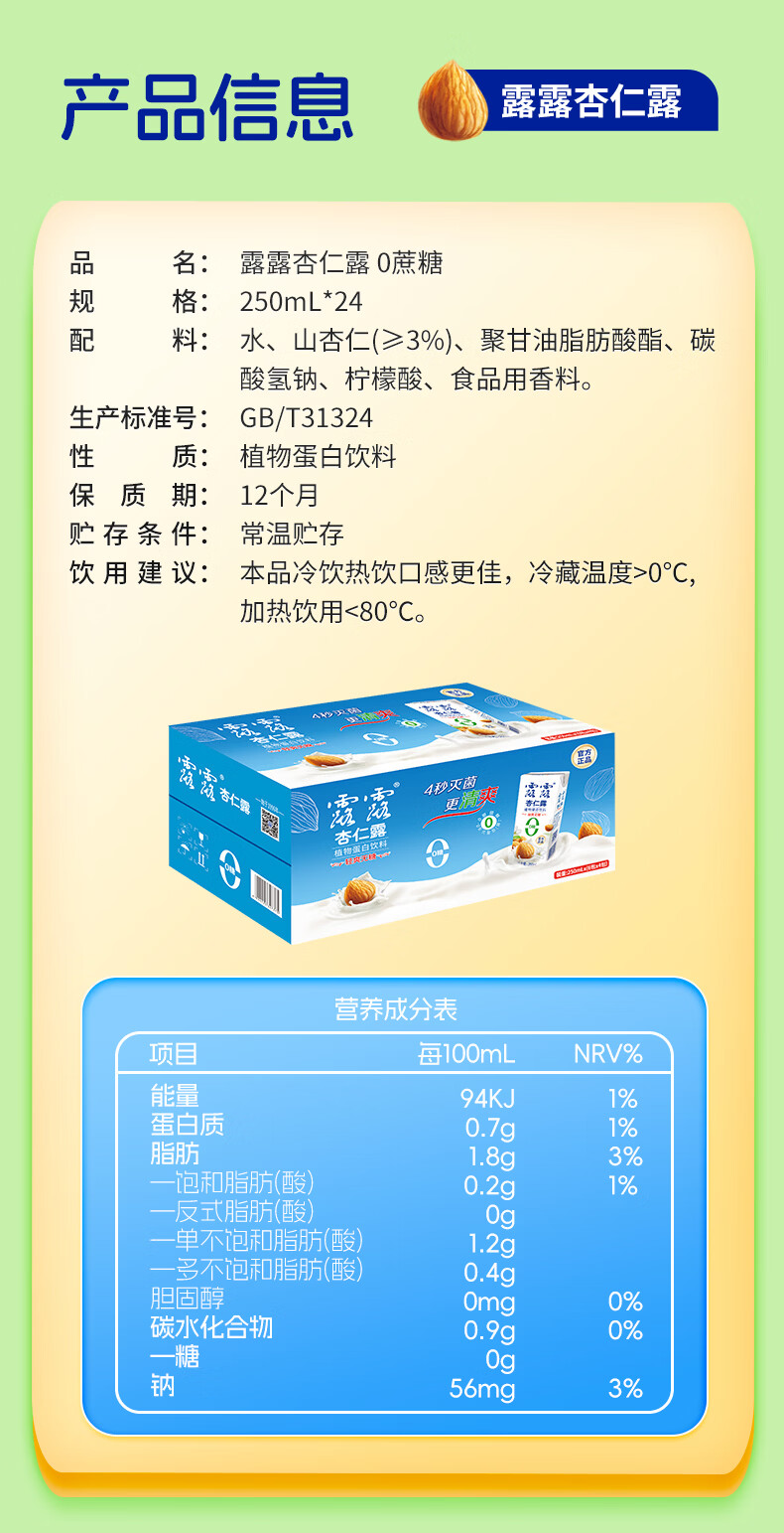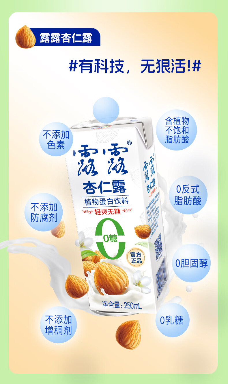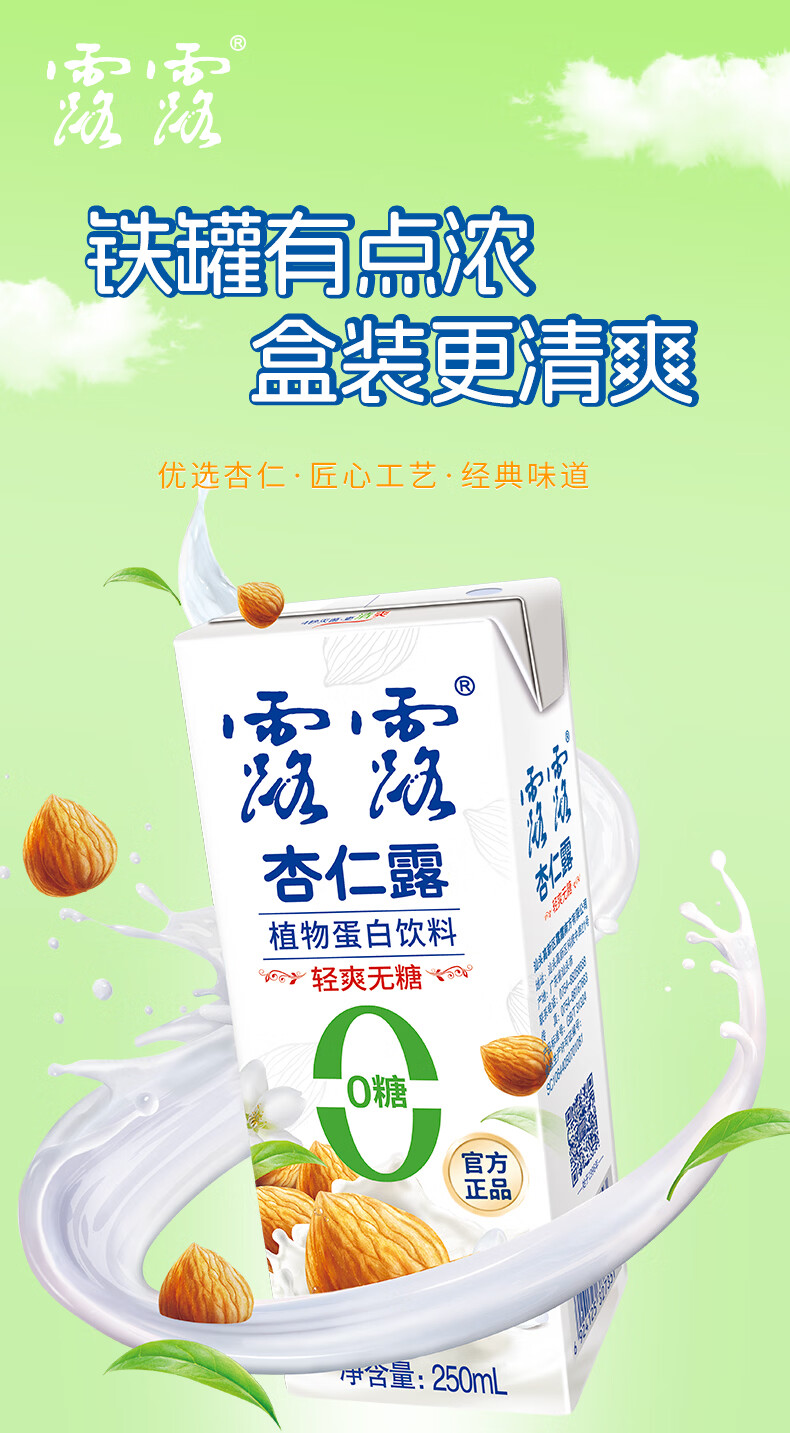 露露杏仁露0糖小利乐250mL*24囤货装植物蛋白无糖无代糖不甜年货送礼 250mL*24