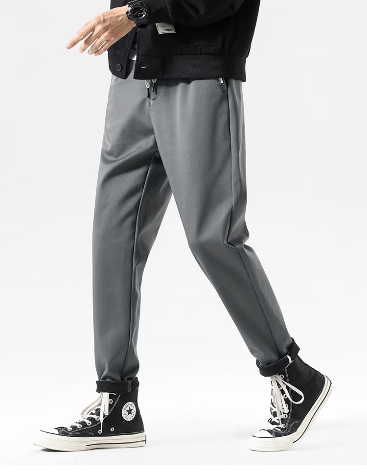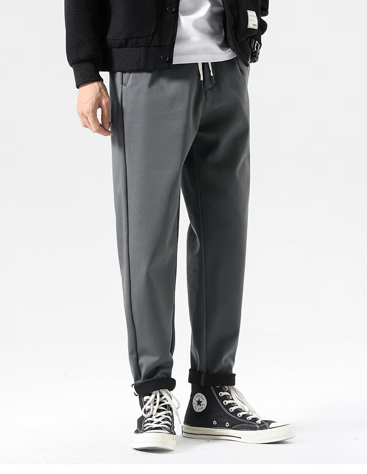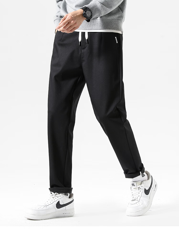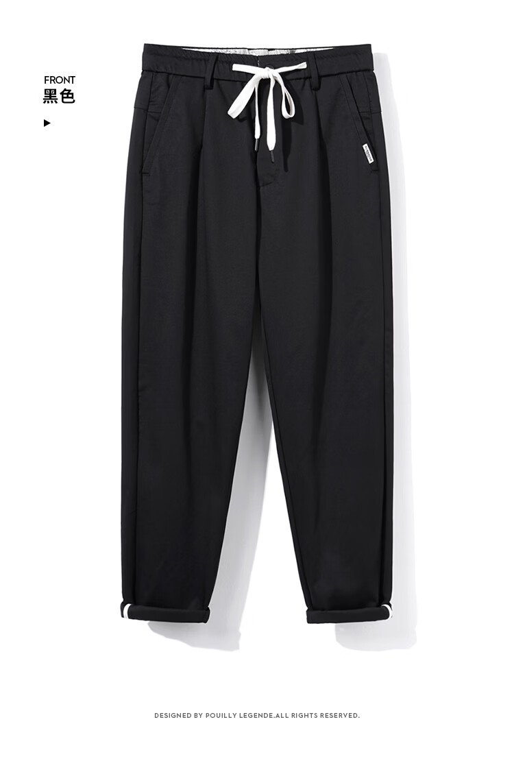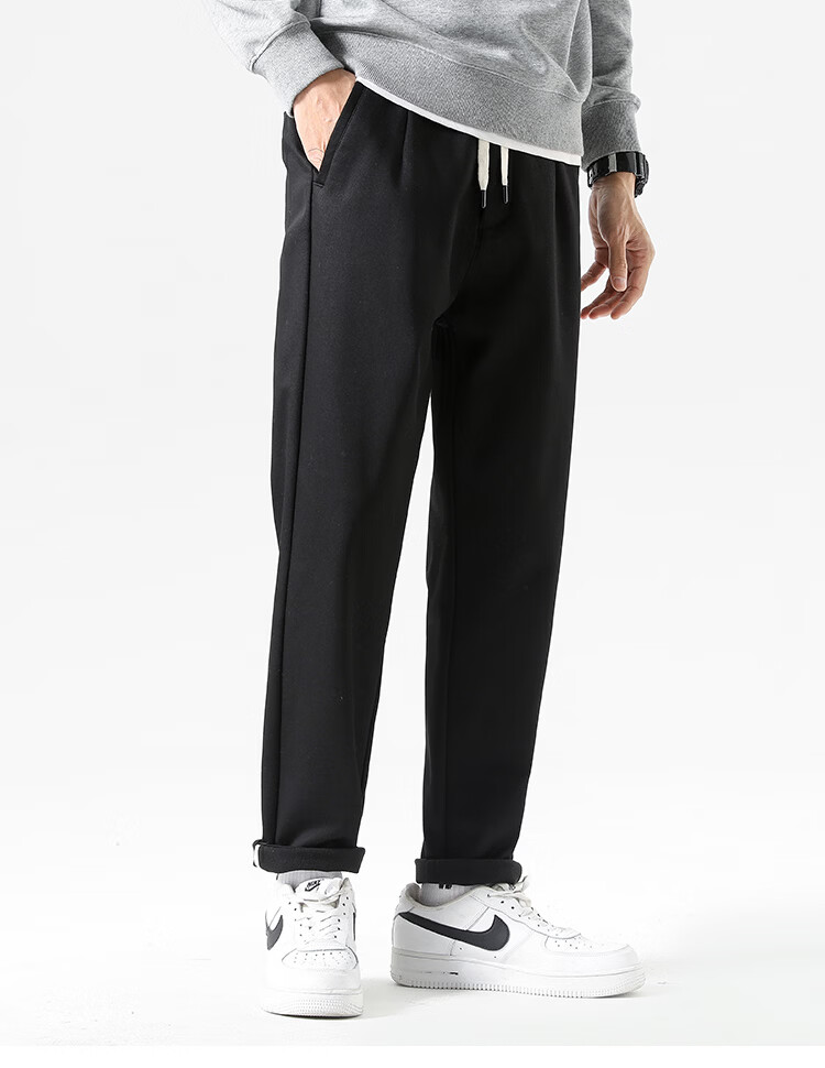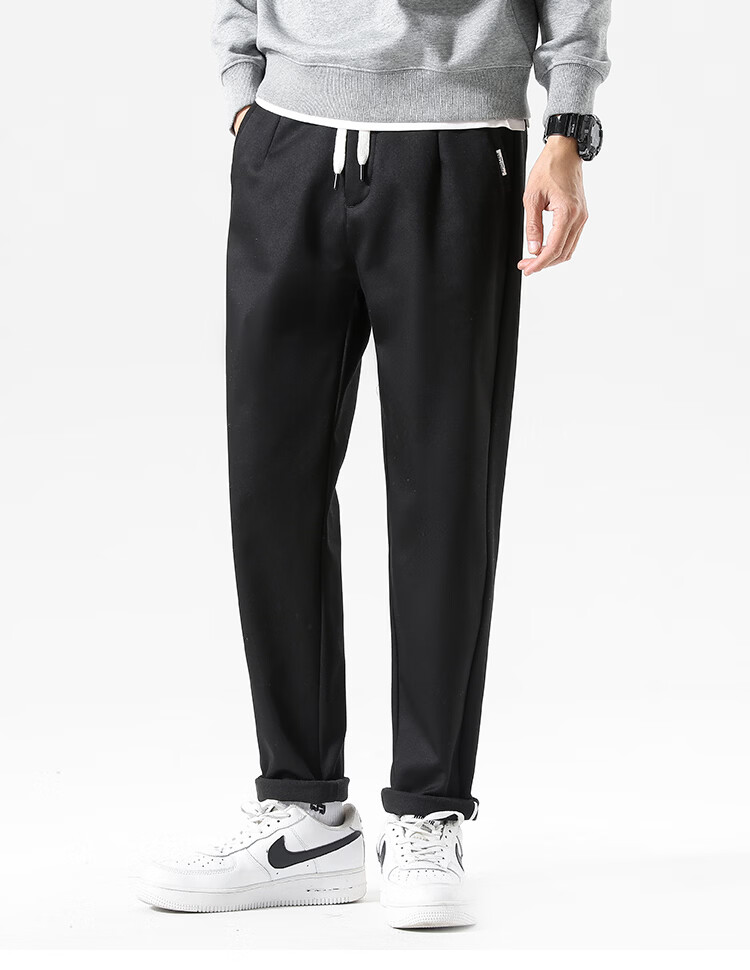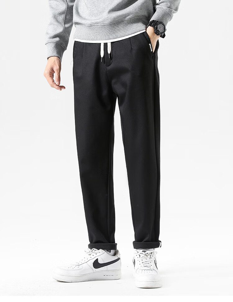 布衣传说自由弹记忆棉磨绒加厚休闲裤男宽松直筒长裤男潮流百搭裤子男 黑色 31
