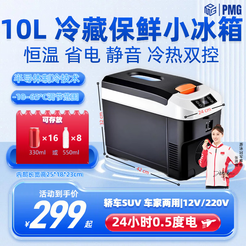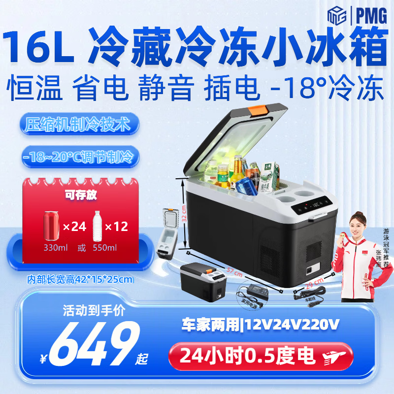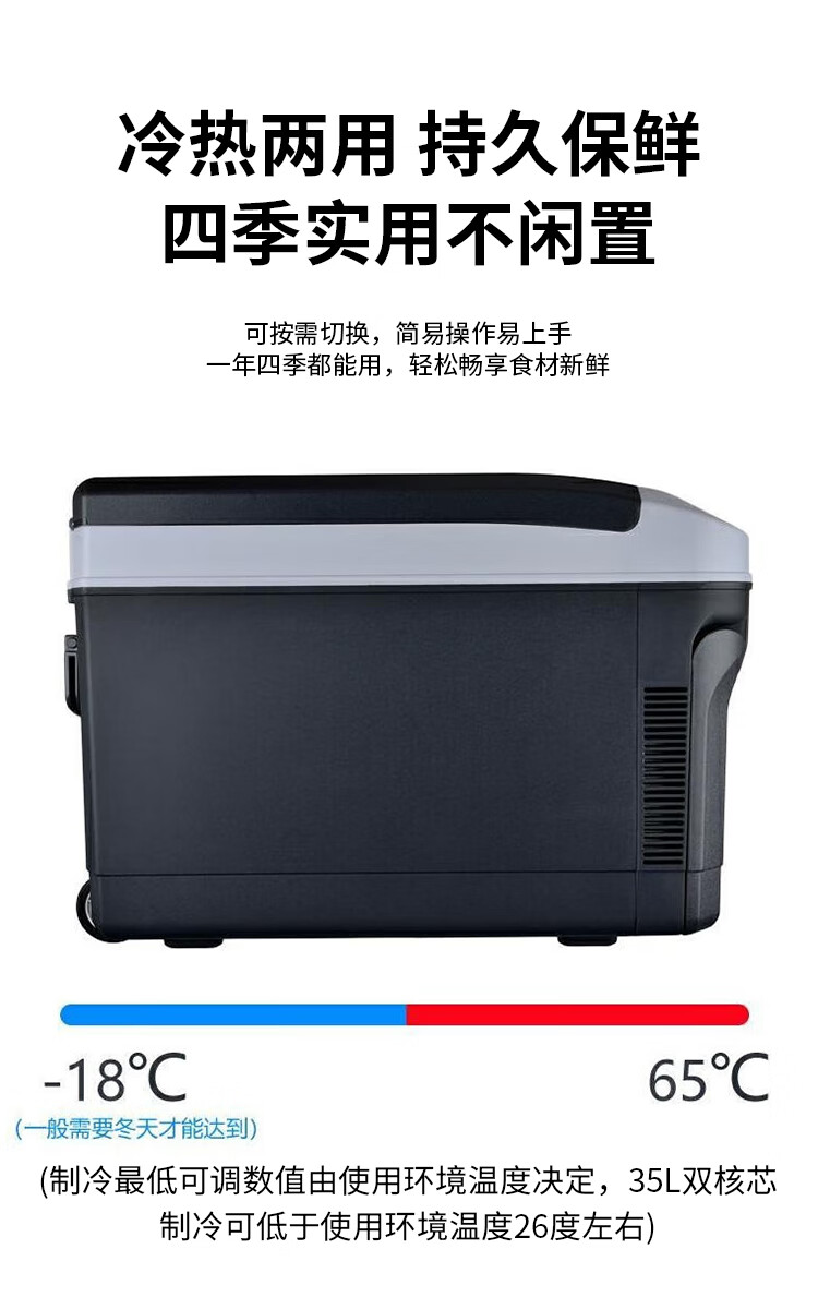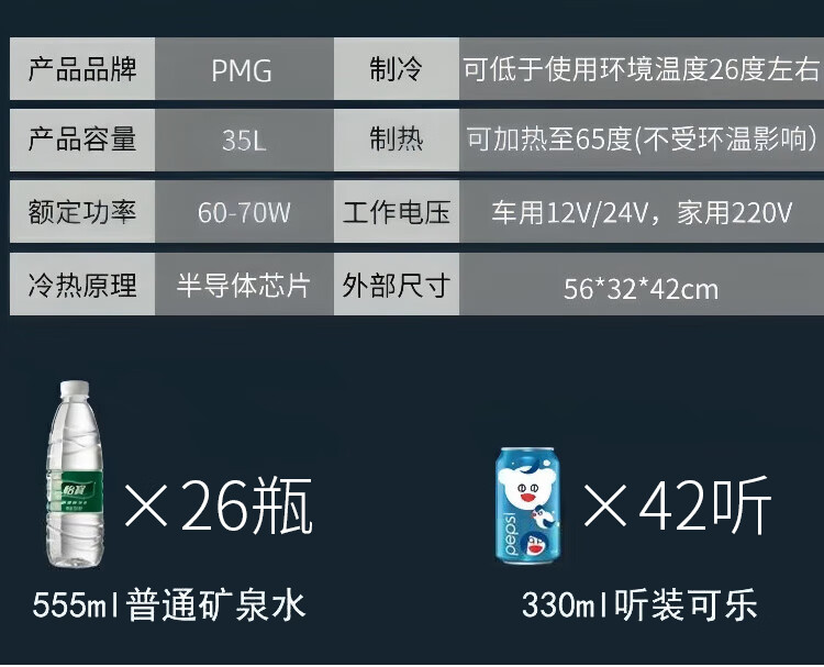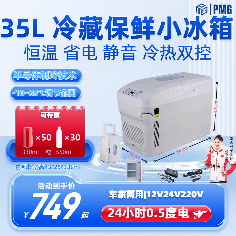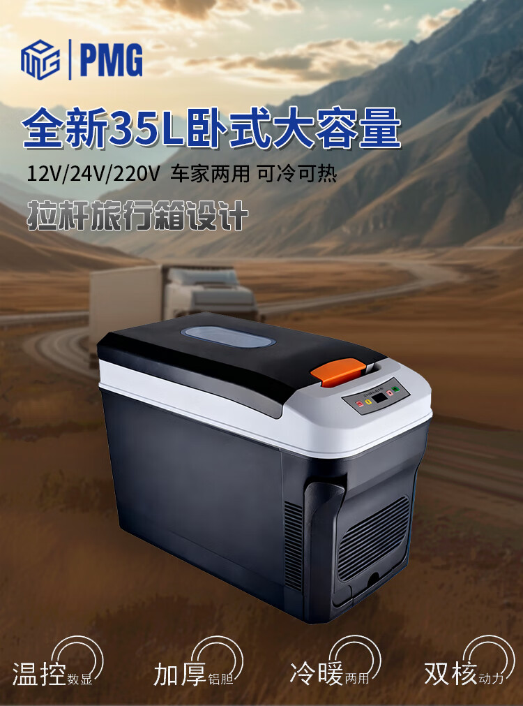 PMG车载冰箱恒温箱可调温度冷藏冷冻12V24V220V可加热车家两用小冰箱 黑色 车家两用 [-10~65°C]恒温冷藏 35L