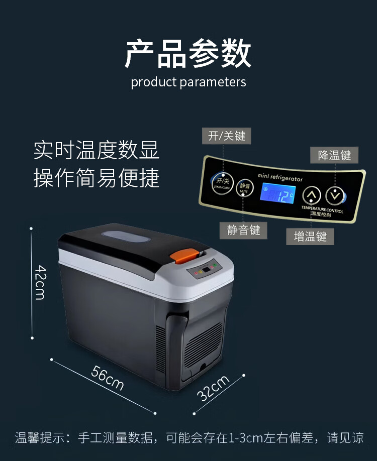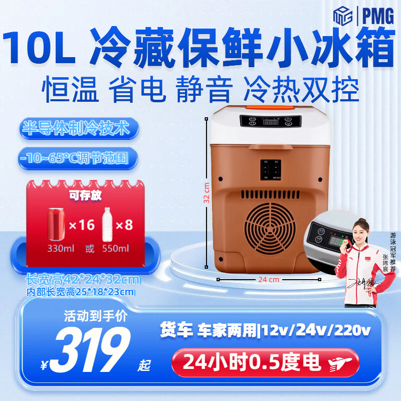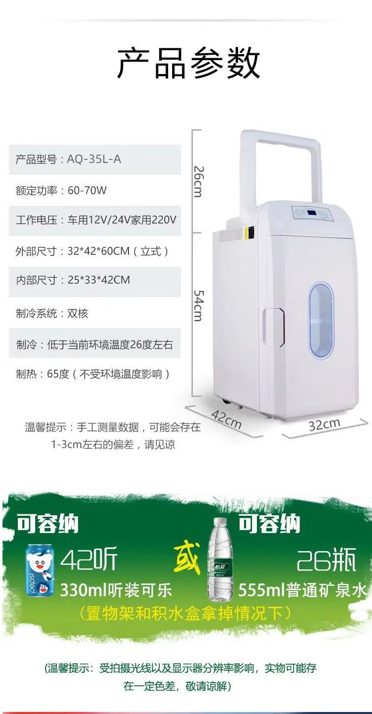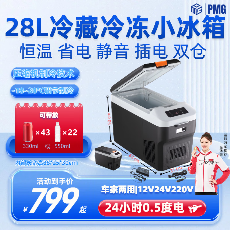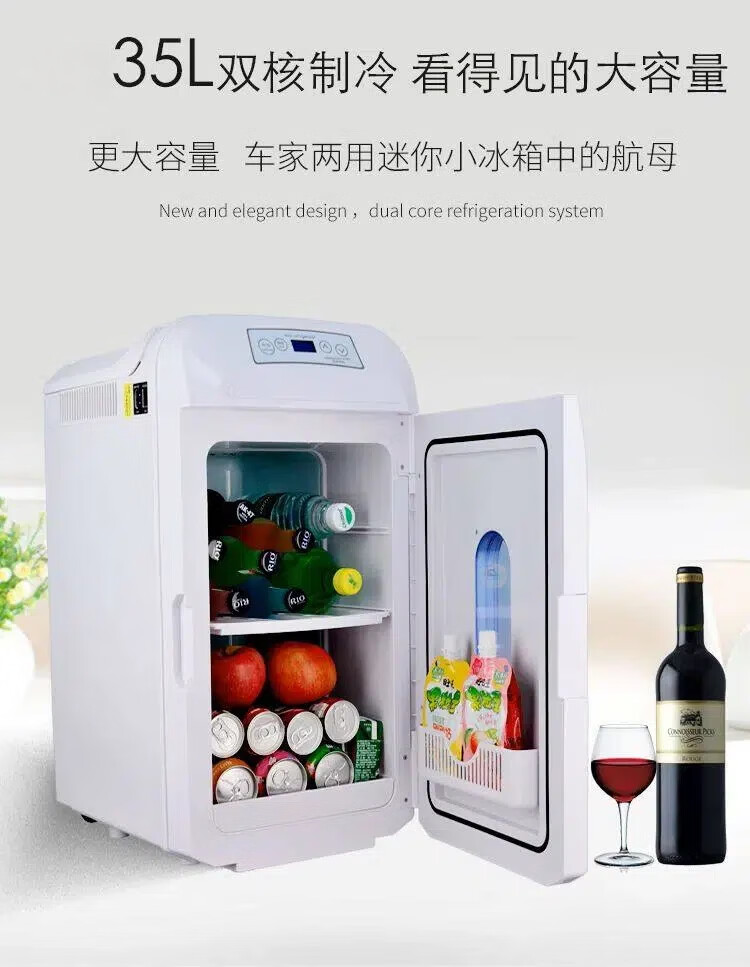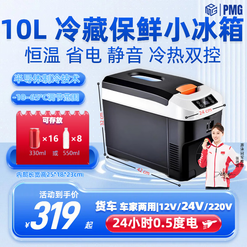 PMG车载冰箱恒温箱可调温度冷藏冷冻12V24V220V可加热车家两用小冰箱 黑色 车家两用 [-10~65°C]恒温冷藏 35L