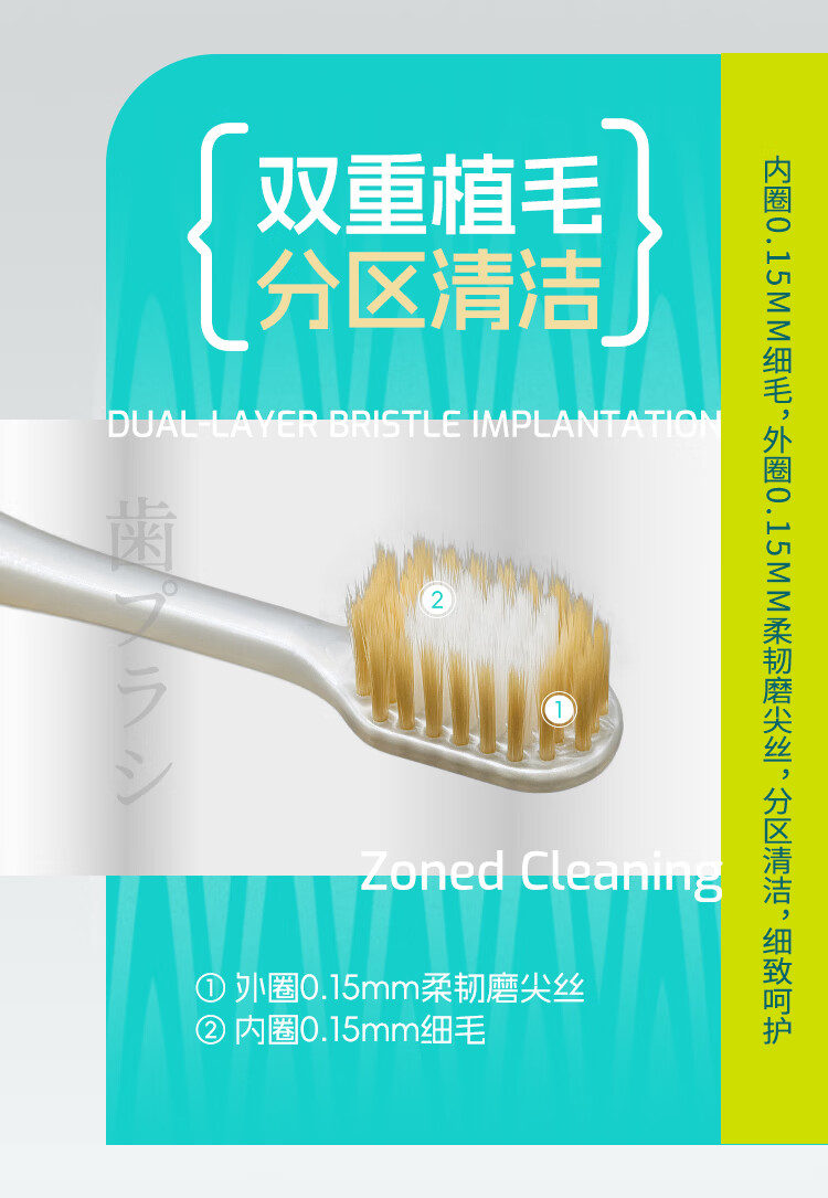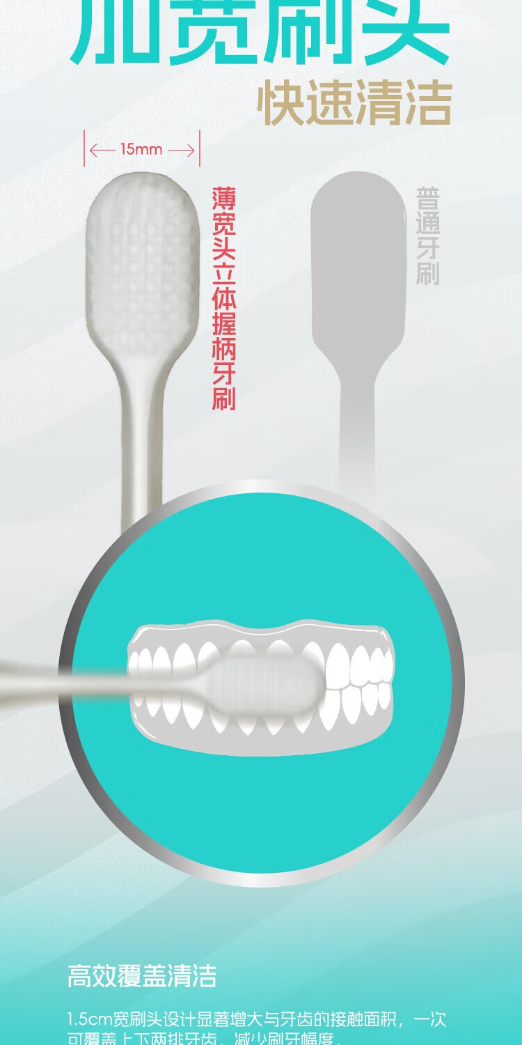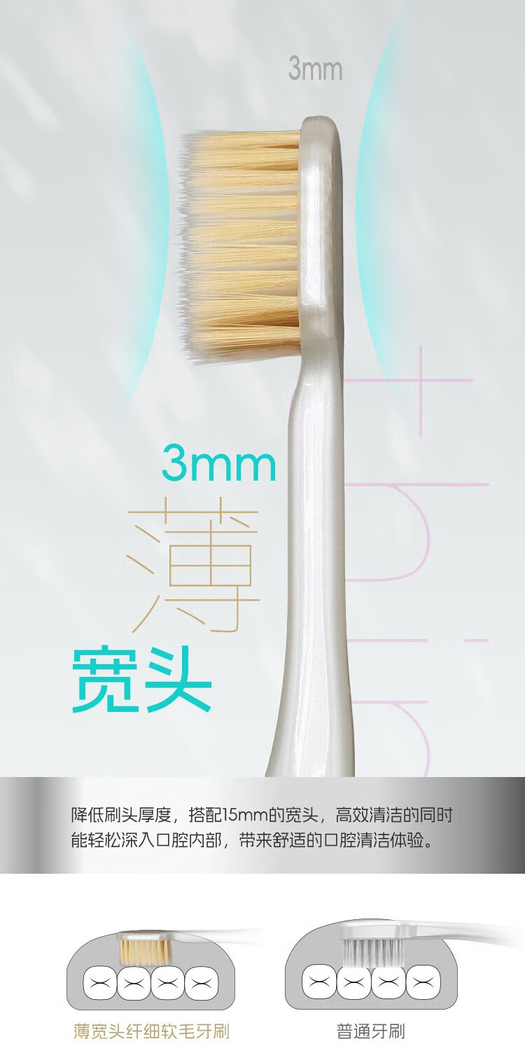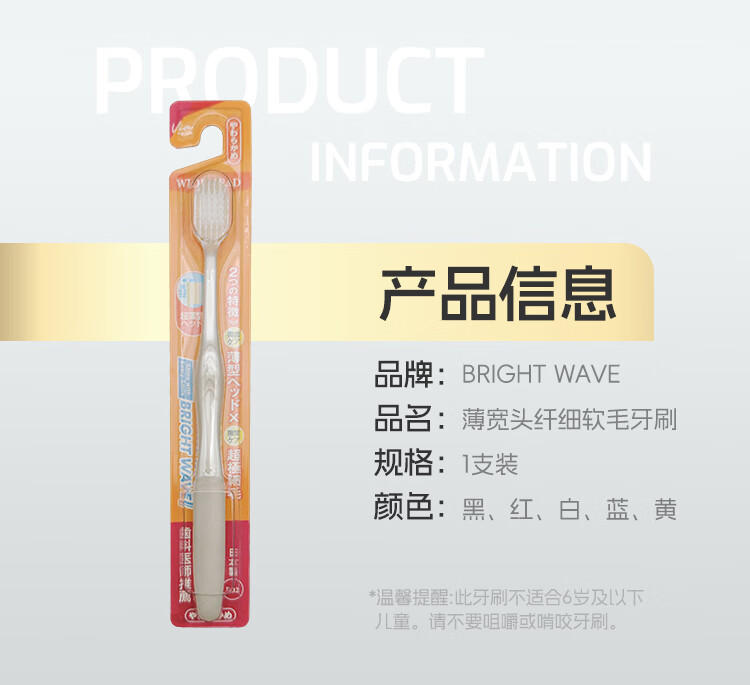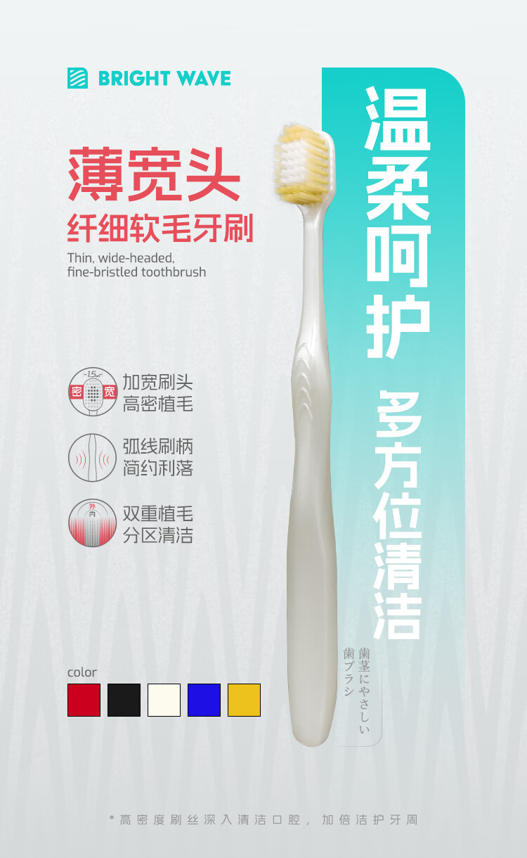 BRIGHT WAVE薄宽头纤细软毛牙刷日本进口成人牙刷48孔超细刷毛分区清洁3mm薄 软毛薄宽头 1支