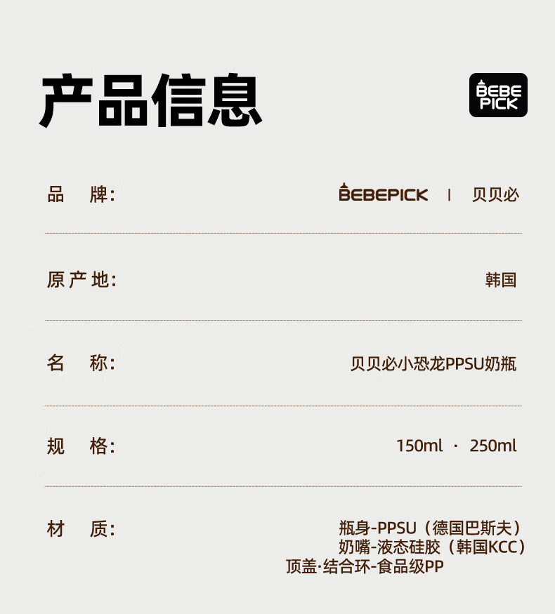 BEBEPICK贝贝必韩国原装进口PPSU奶瓶新生儿防胀气宽口径0-12以上官方正品 150ml