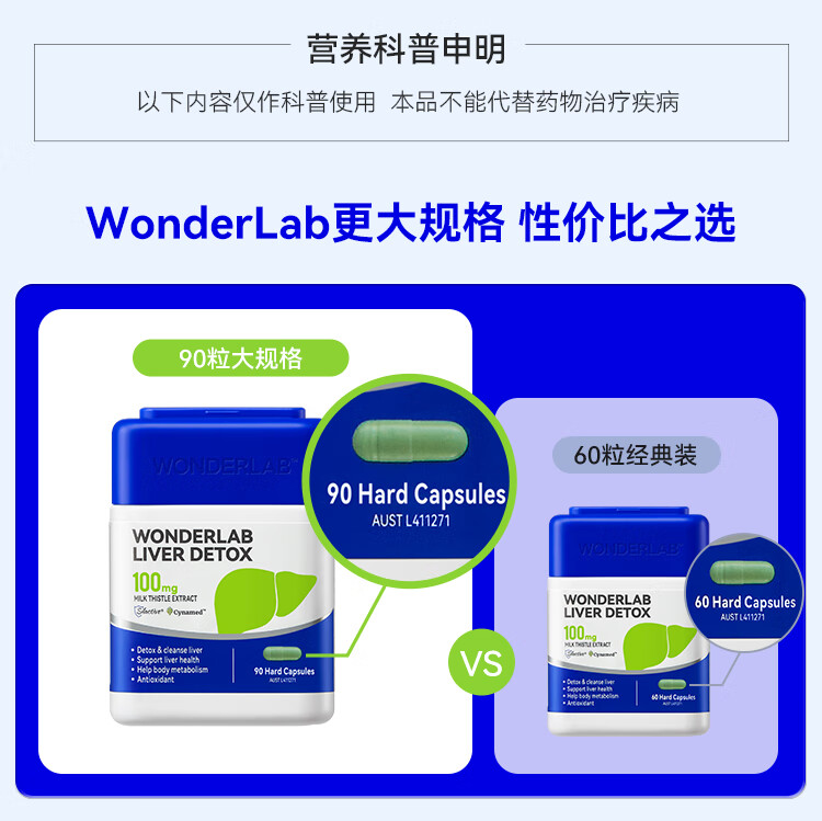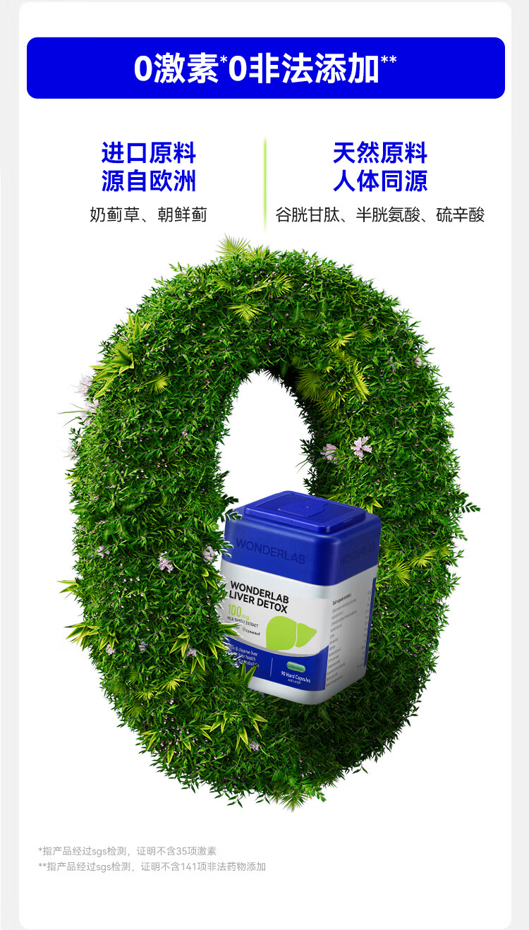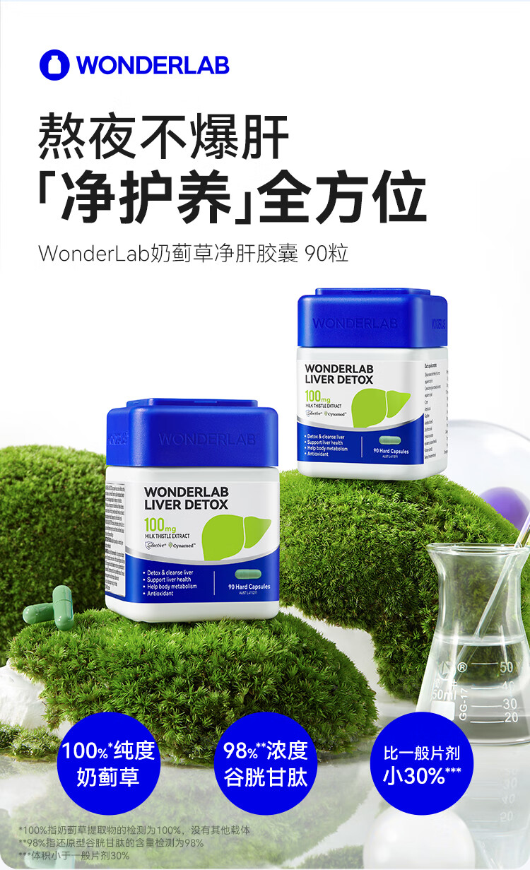 WONDERLAB奶蓟草护肝片90粒*2瓶 水飞蓟养肝排毒清肝应酬加班熬夜男女进口