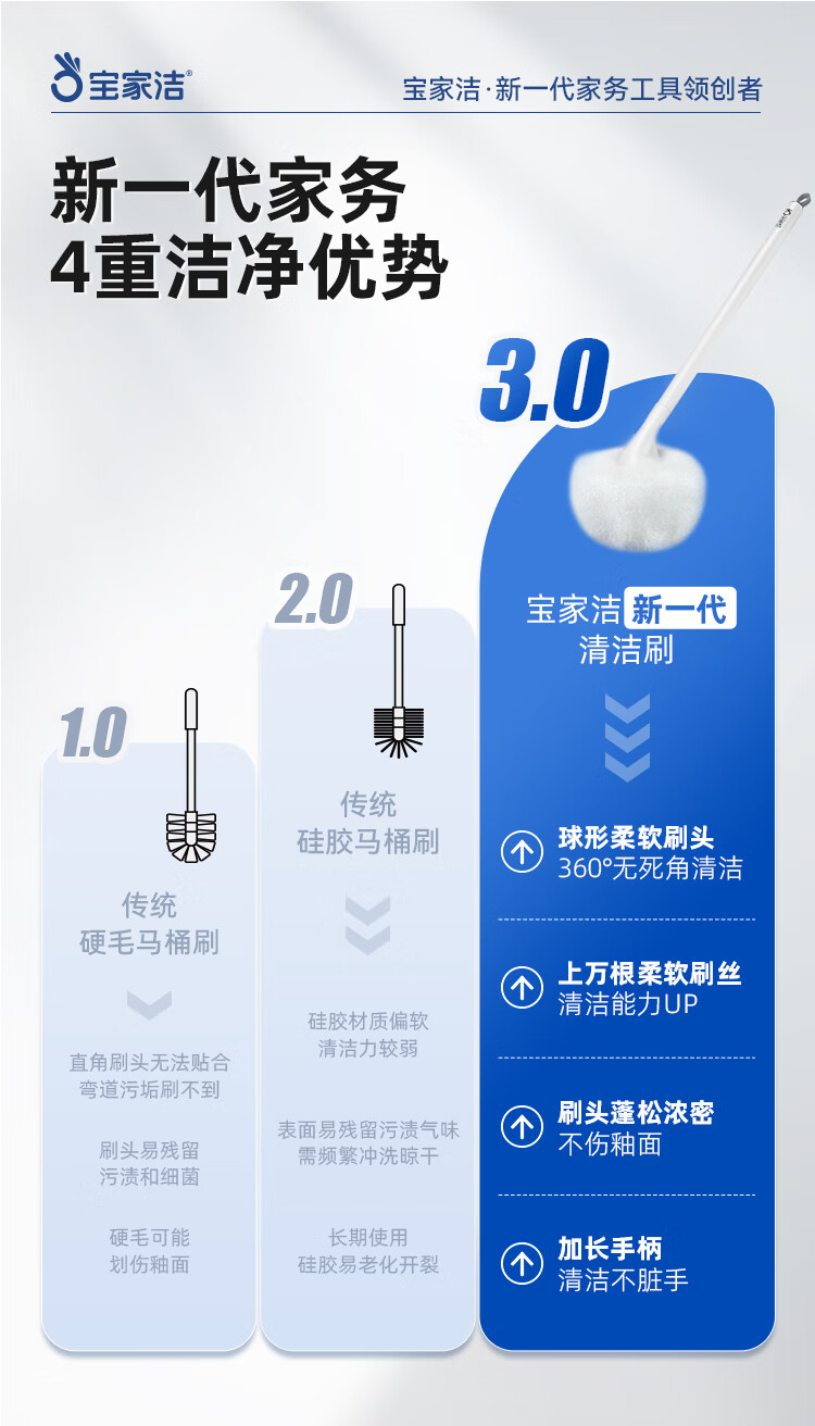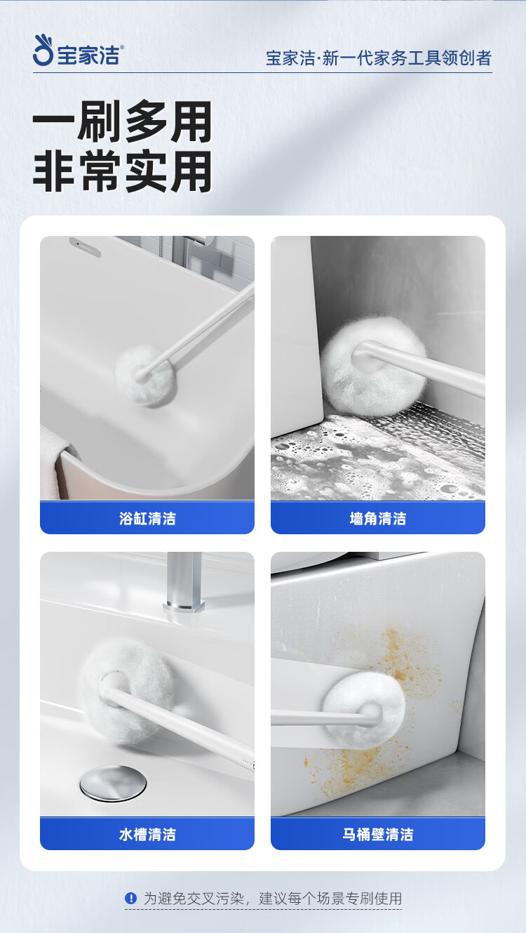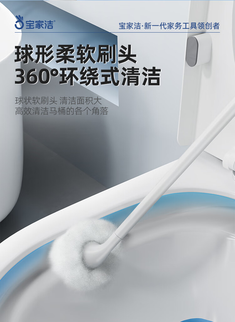 宝家洁云朵球形长柄无死角马桶刷洗厕所刷家用卫生间清洁神器浴缸刷B53 球型云朵马桶刷【1个】