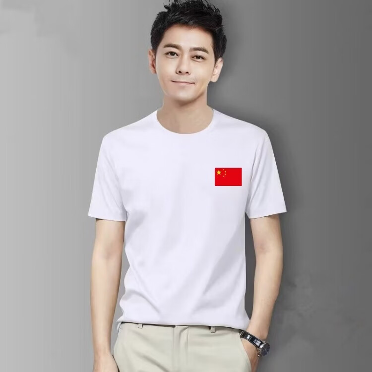 国旗夏季三防短袖小白t三代t恤男女同款纯棉丝光宽松半袖上衣 白色 4XL 190-210斤