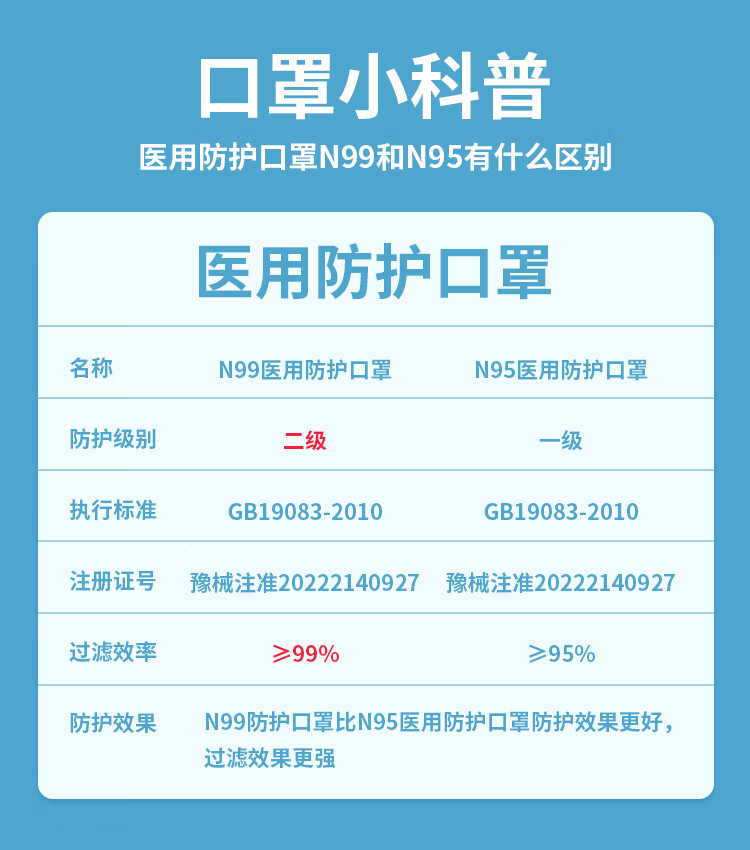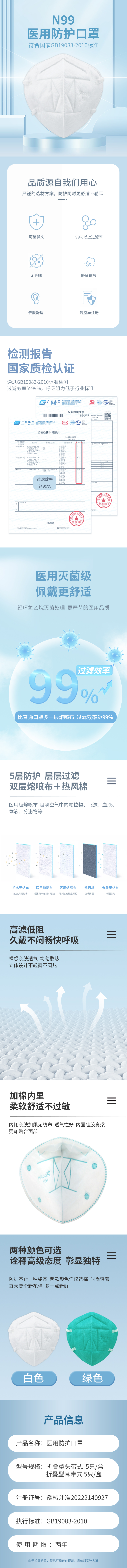 飘安N99医用防护口罩 比N95口罩更高防护灭菌独立包装 绿色硅胶鼻梁头戴1盒5只