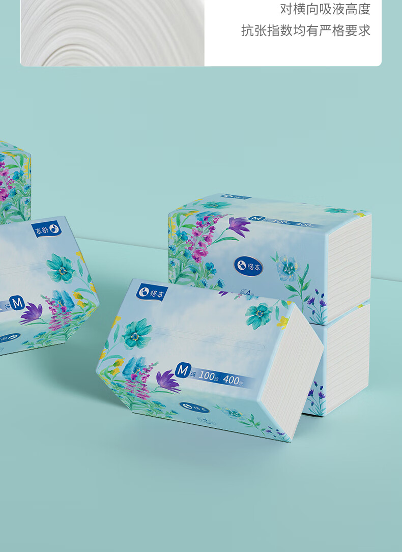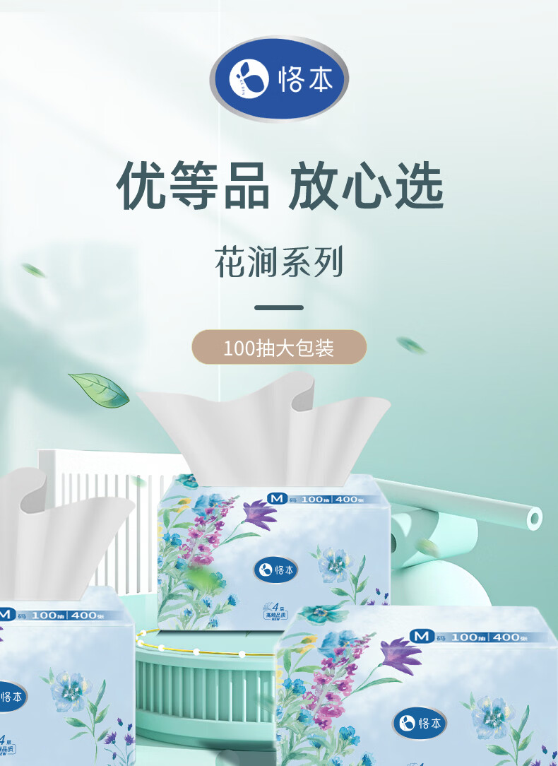 恪本抽纸 优等品400张原生木浆面巾纸卫生纸餐巾纸擦手纸超大包 4层 100抽*12包