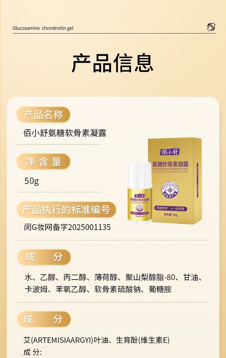 佰小舒氨糖软骨素凝露老人外用涂抹膏膝盖肩膝关节运动舒缓按摩膏 【150g+20g】氨糖软骨素凝露(50g*3+20g)