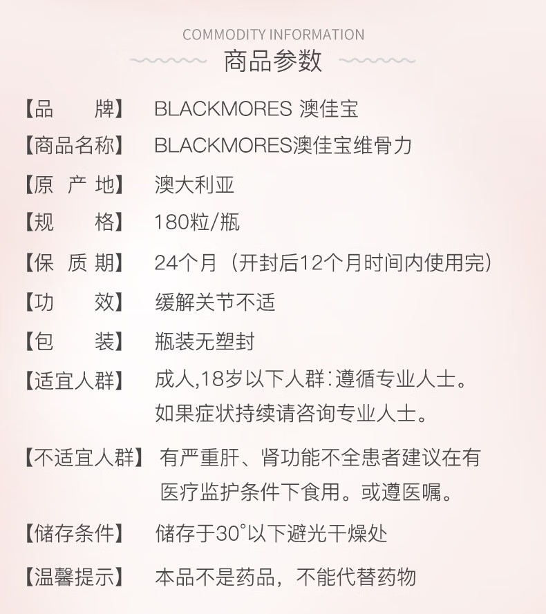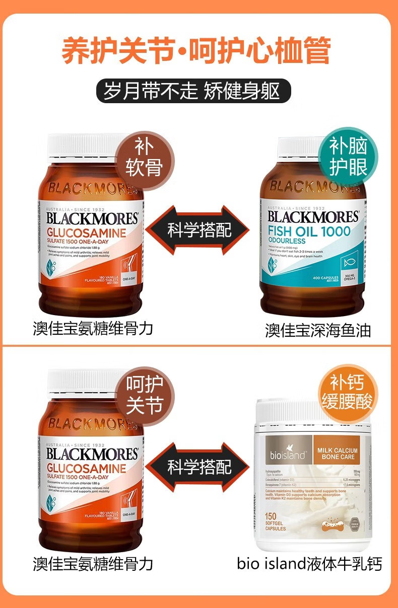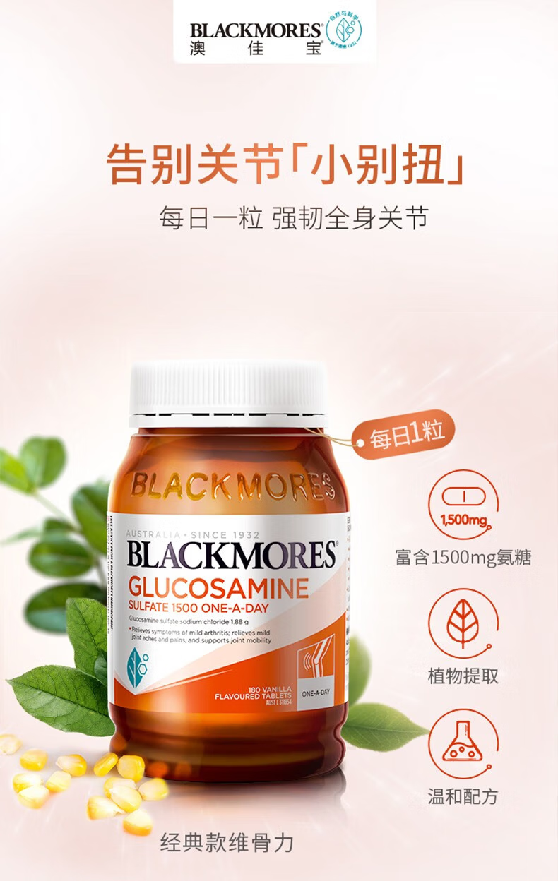澳佳宝氨糖维骨力高浓度1500mg180粒澳洲进口有效期27年初 澳佳宝氨糖维骨力 180粒*2瓶