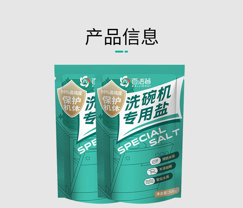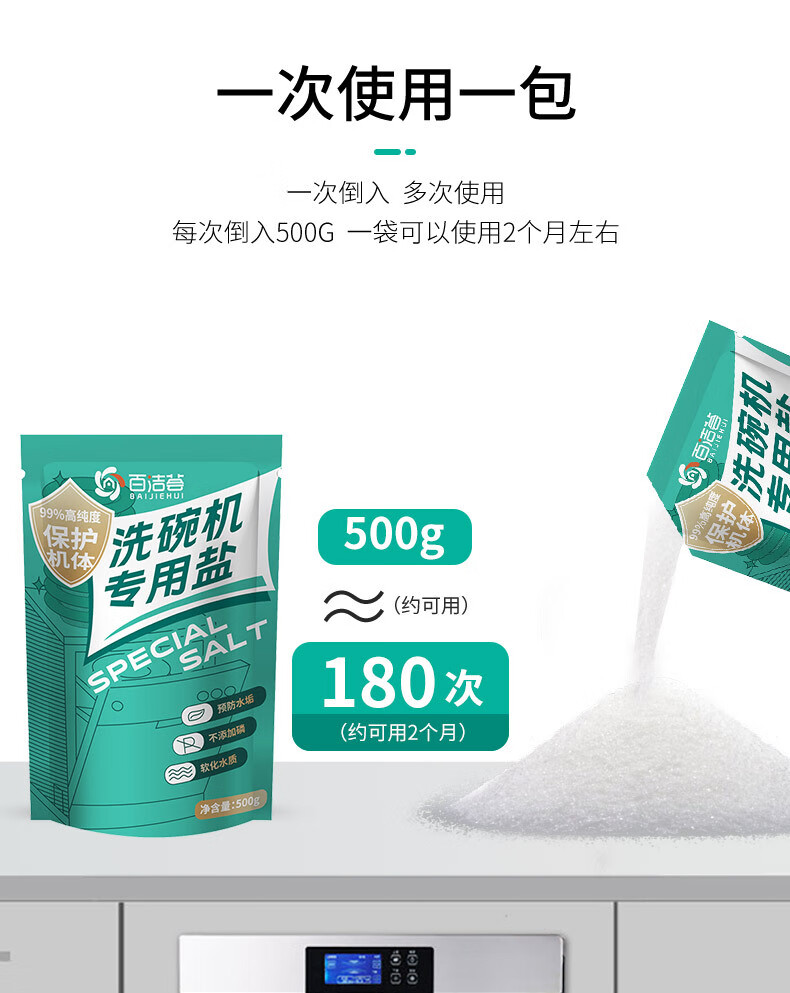 百洁荟洗碗机专用洗碗盐软水洗涤粉剂去油污亮碟洗碗粉现 500g 洗碗机专用洗碗盐 1袋