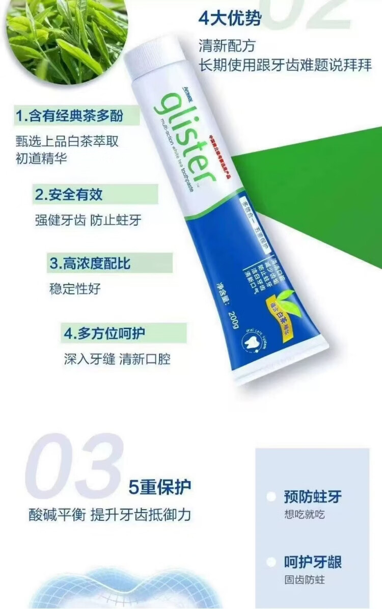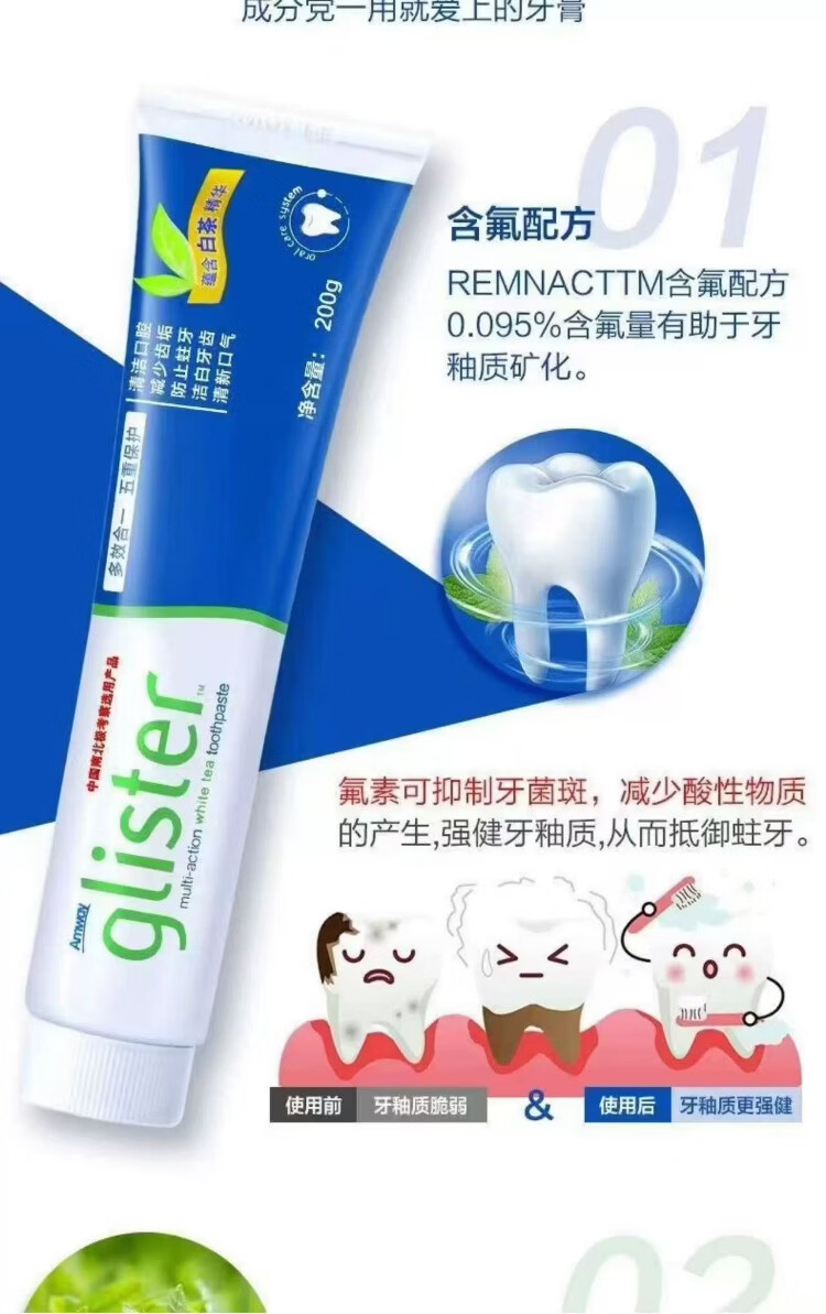 安利(Amway)丽齿健多效白茶牙膏薄荷牙膏清洁口腔洁白牙齿清新口气口臭含氟 白茶薄荷各1支