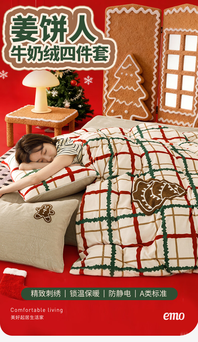 一默四件套秋冬季牛奶绒被套床单枕套家纺床上用品姜饼人牛奶绒四件套 姜饼人 床单款 (被套200*230cm) 四件套