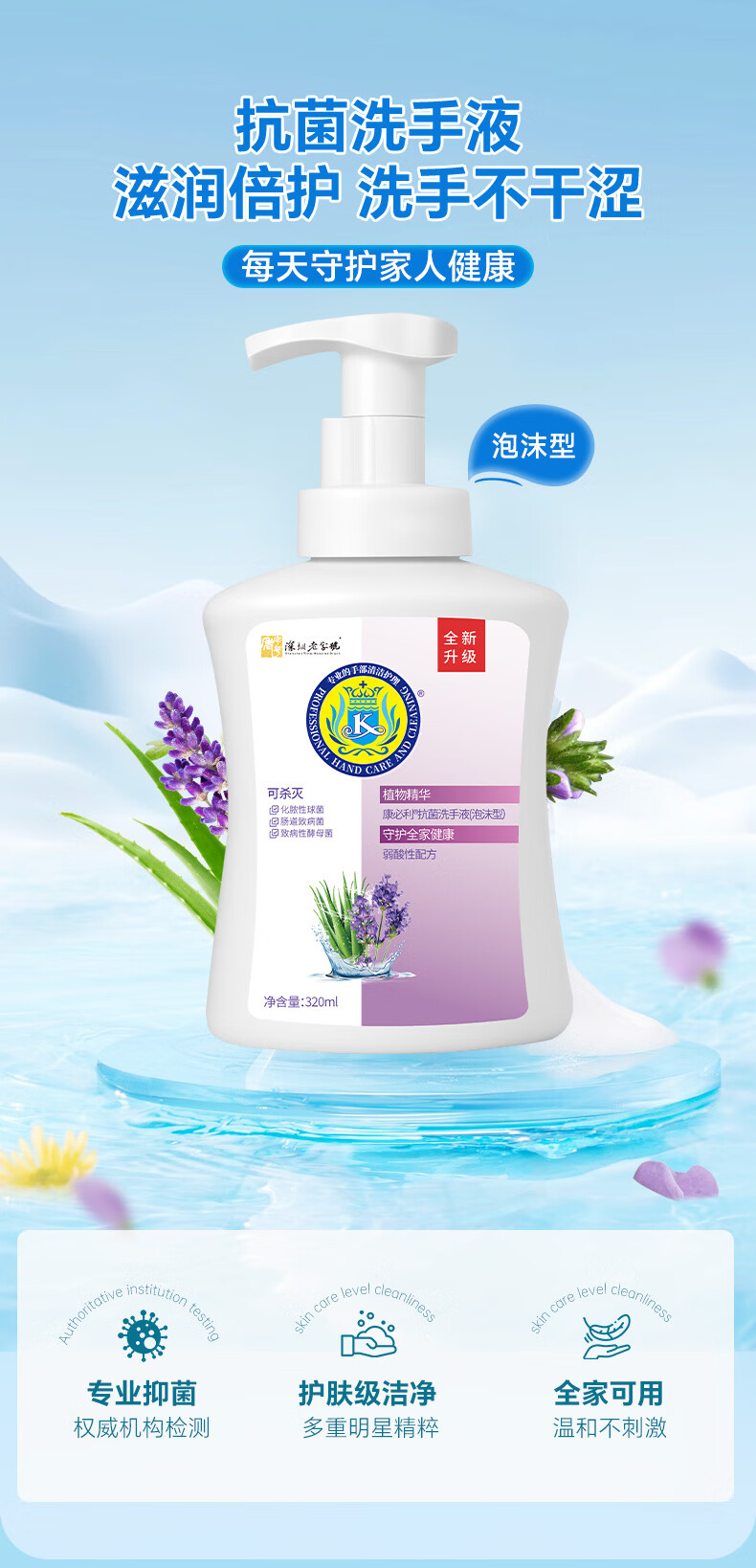 康必利泡沫洗手液消毒抗菌抑菌杀菌花香果香柔和配方护手儿童洗手液花朵 【薰衣草&牛油果芦荟&柠檬】强惠组合