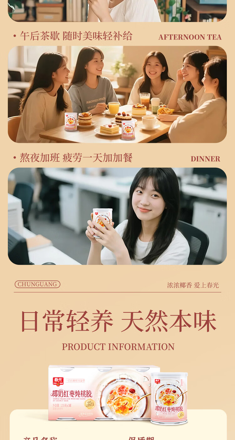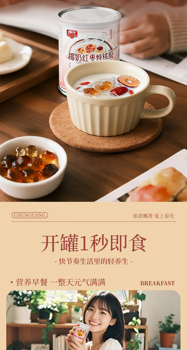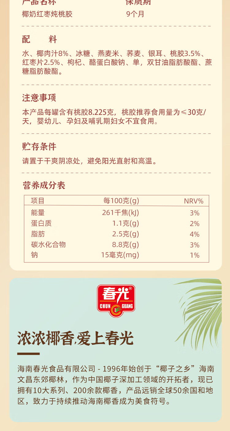 春光食品 椰奶红枣炖桃胶200g×8罐 海南特产 代餐休闲零食