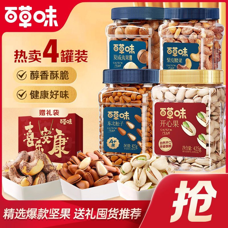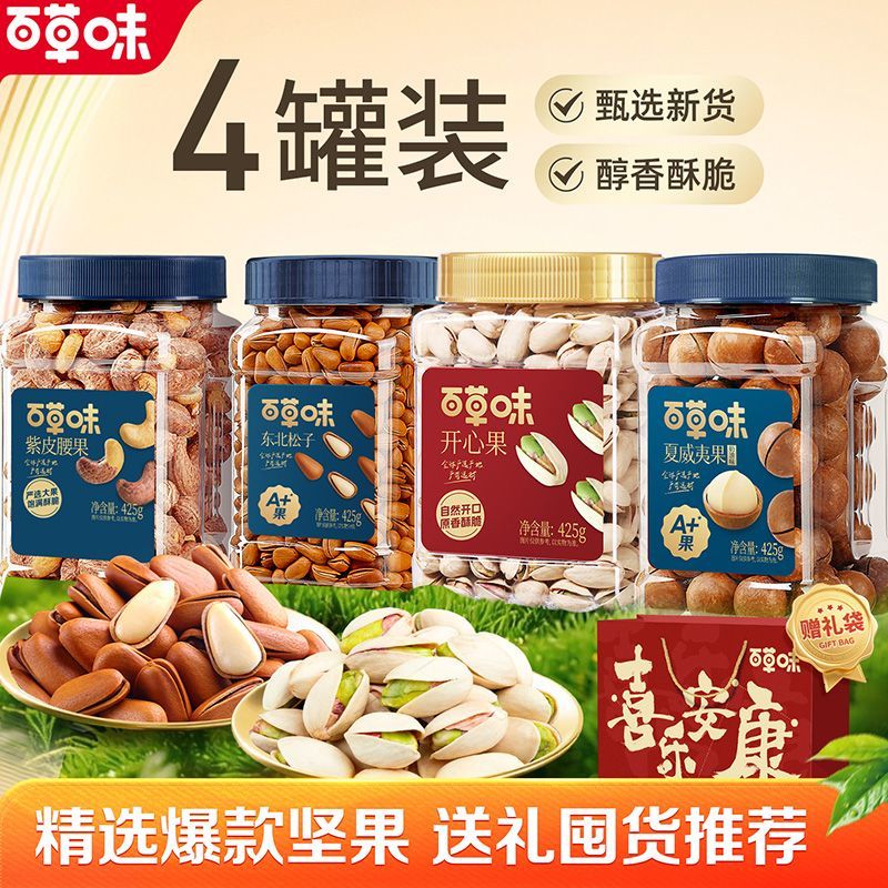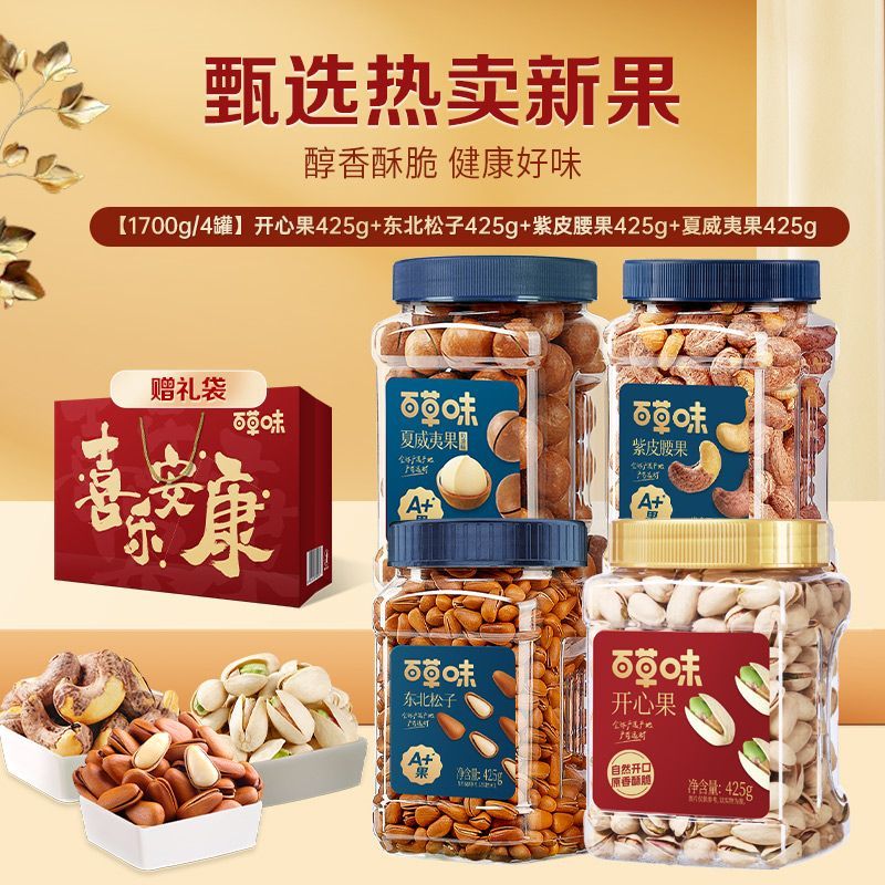 4罐装百草味纯坚果组合1700g开心果松子腰果夏威夷果节日送礼团购