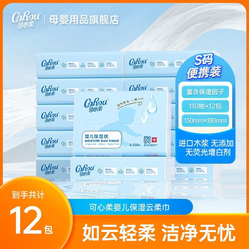 可心柔V9婴儿保湿柔纸巾宝宝专用云柔巾3层110抽家庭装乳霜纸